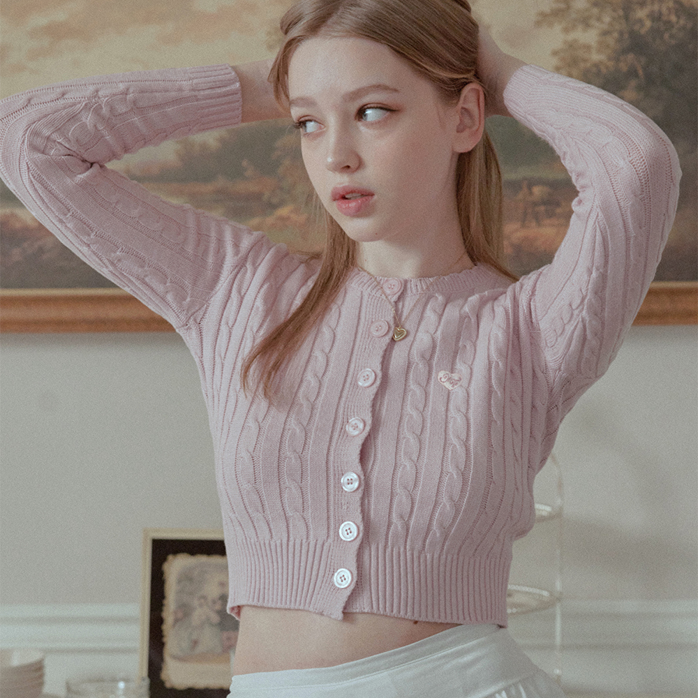 클래식하고 베이직한 꽈배기 조직과 볼드하지 않은 미디움 사이즈의 패턴으로 캐주얼한 디자인의 브이넥라인 니트 가디건 입니다.