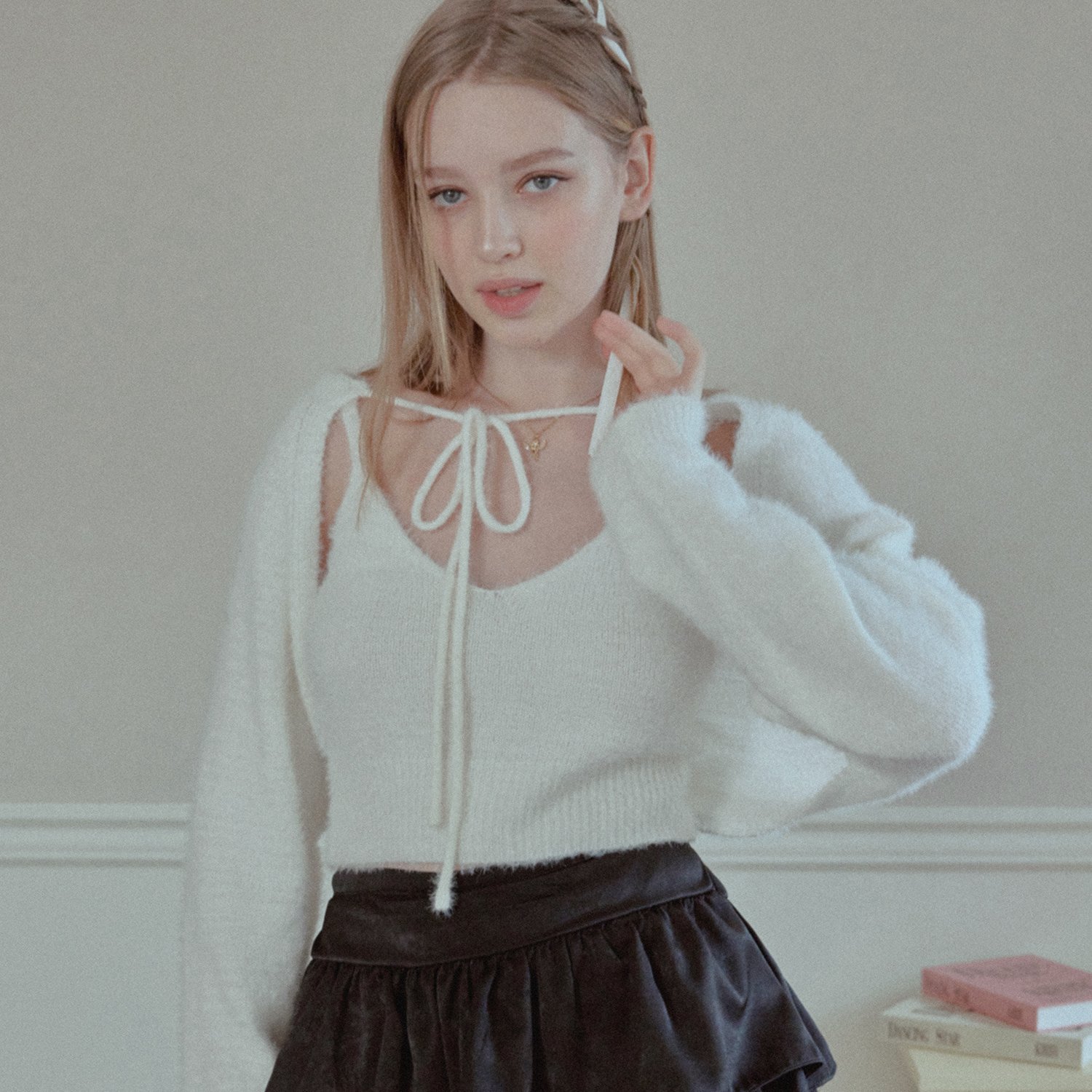 2-WAY Bunny Crop Zip-up Knit Charcoal