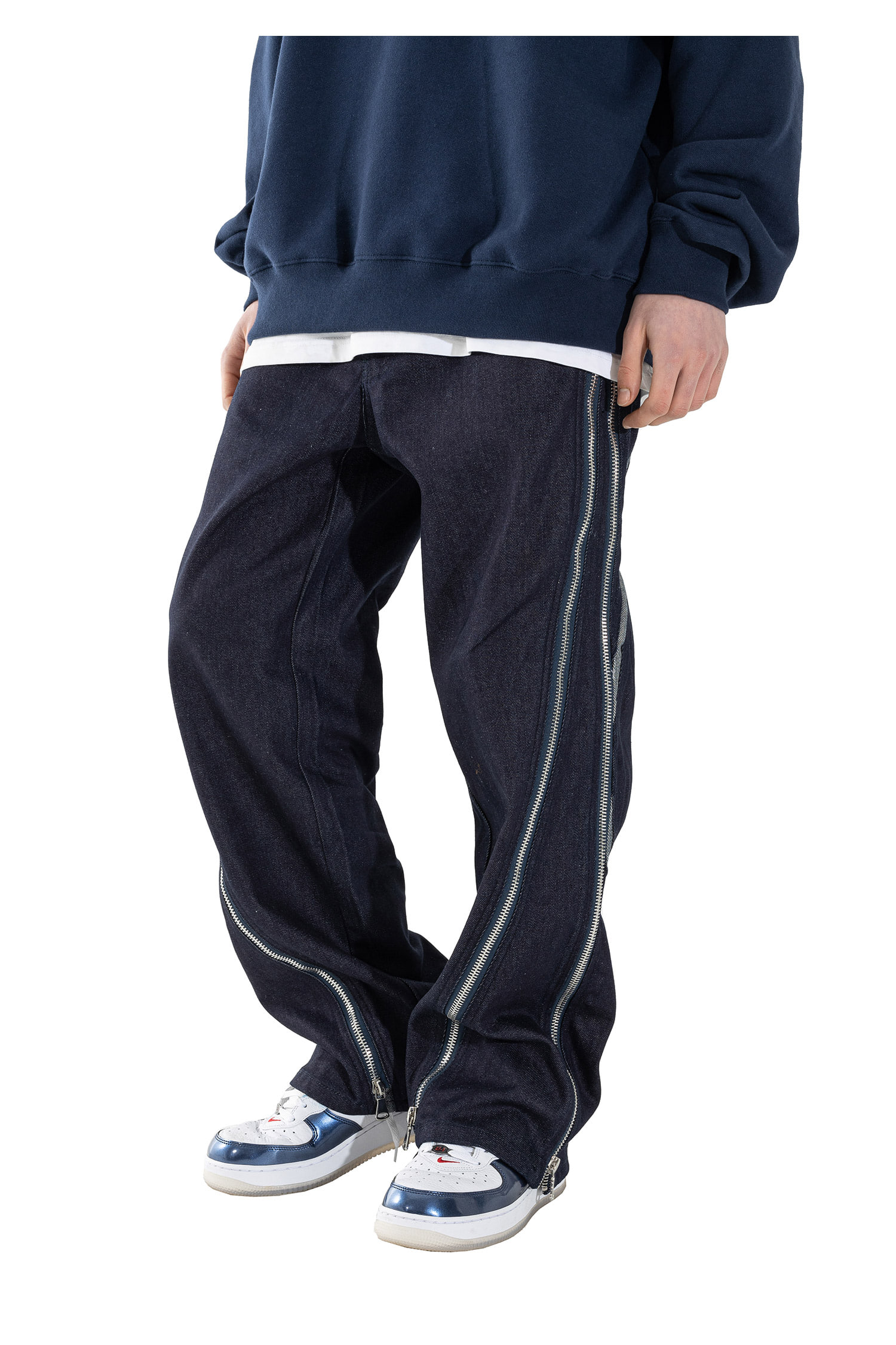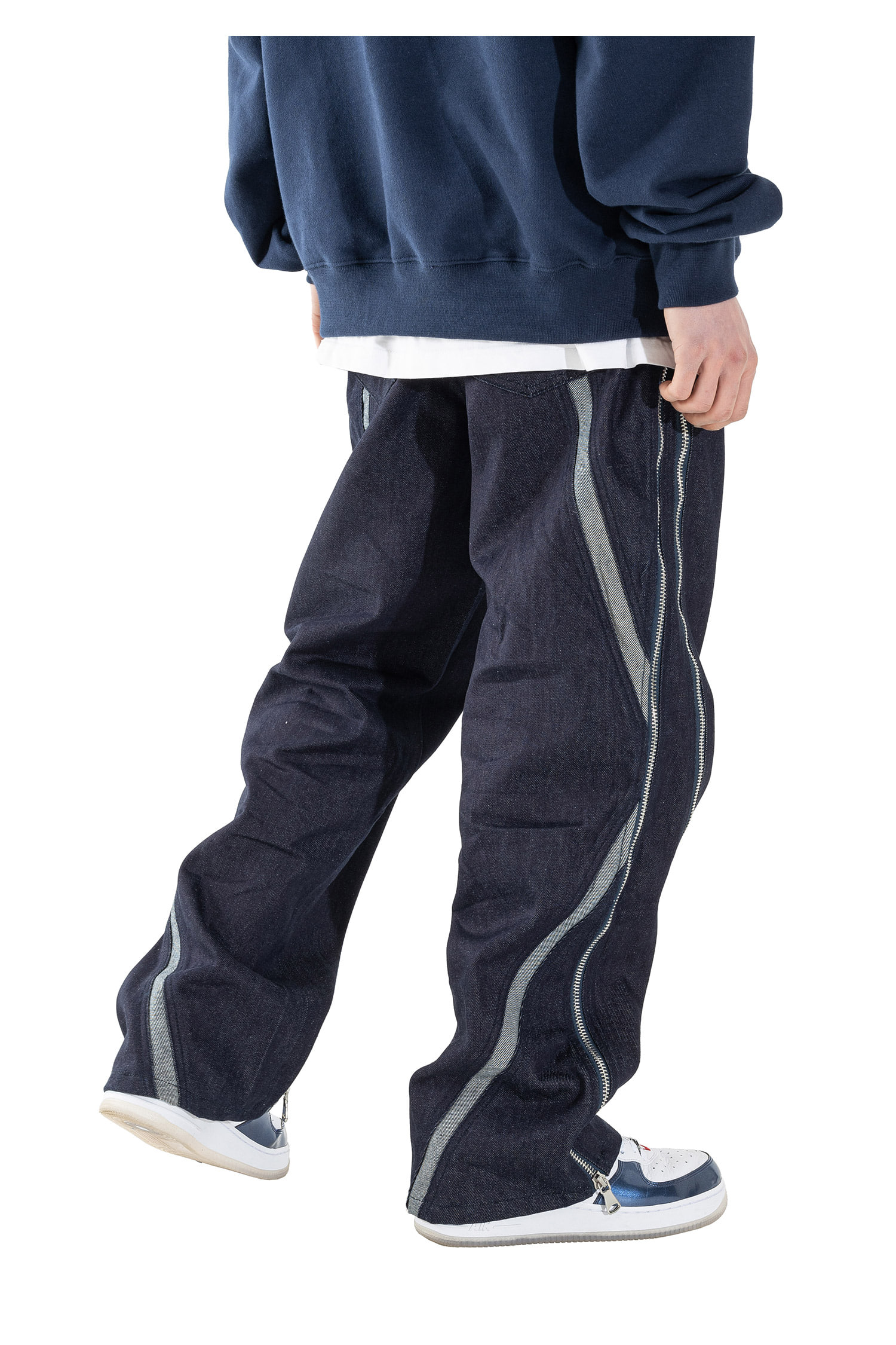 뒷주머니 지퍼 포켓이 포인트인 와이드 데님