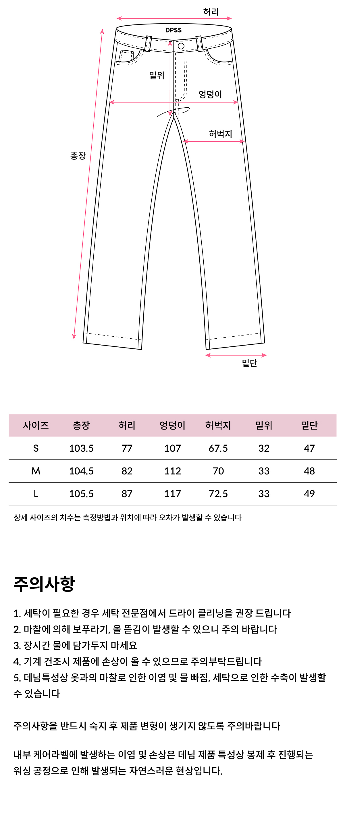 슬라브원단에 빈티지한 워싱 및 오염된듯한 워싱을 한 데님팬츠