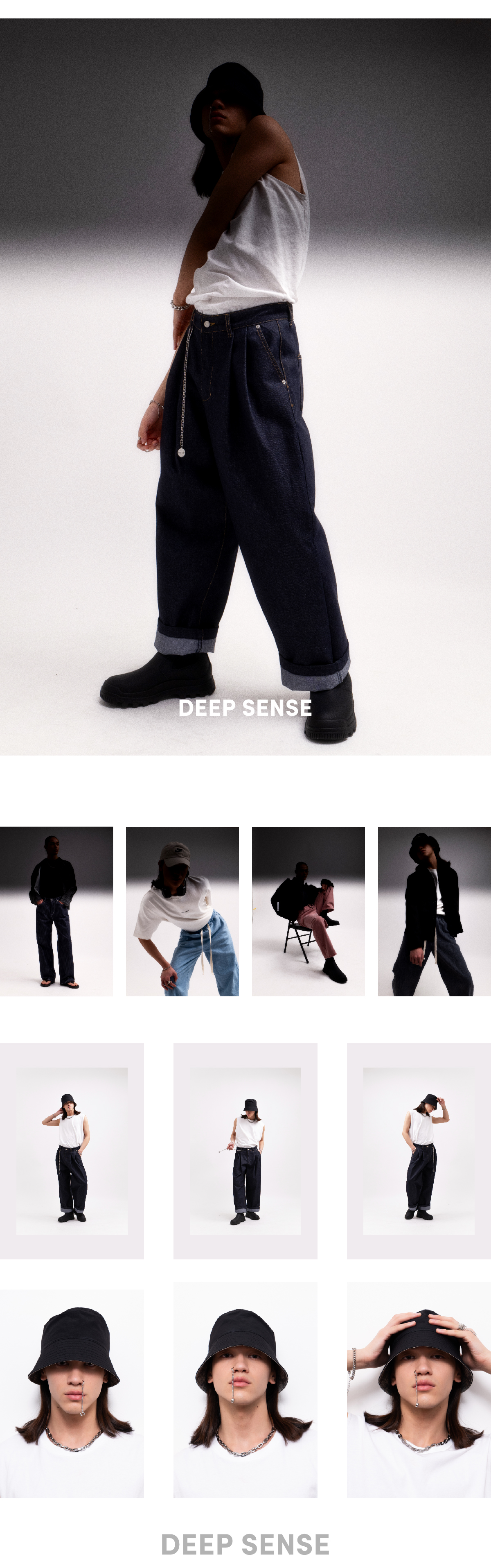 뒷주머니 지퍼 포켓이 포인트인 와이드 데님