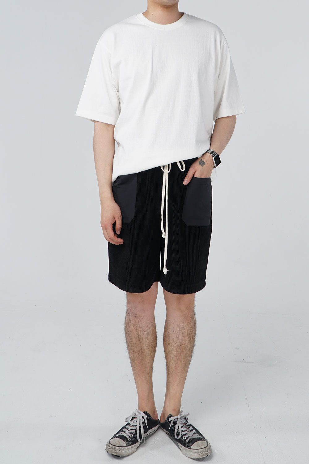 - 브랜드 시그니처 포켓을 사용한 코듀로이 팬츠입니다.