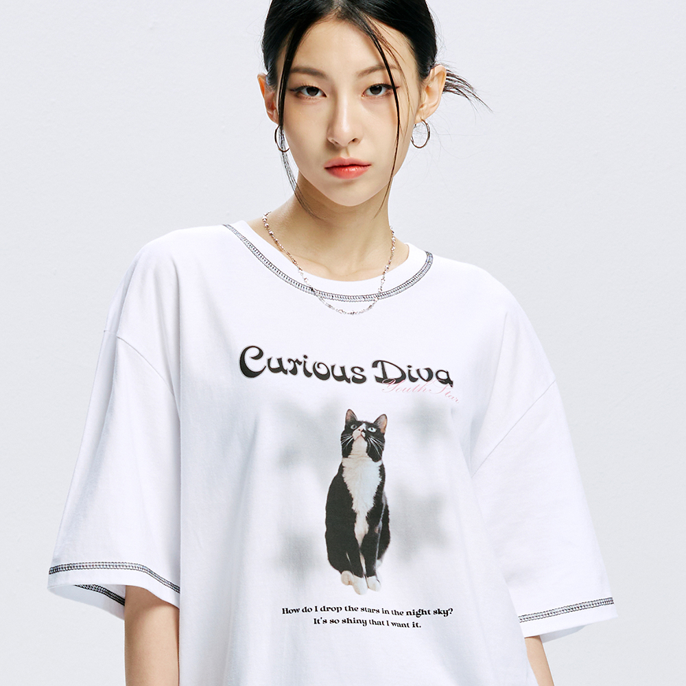 포인트를 더해주는 고양이 그래픽 반팔 티셔츠