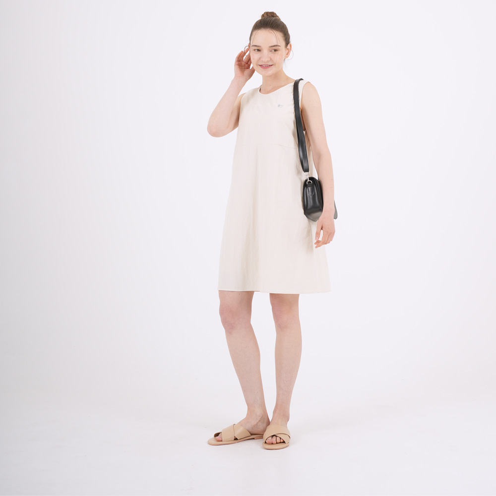 linen sleeveless line dress white