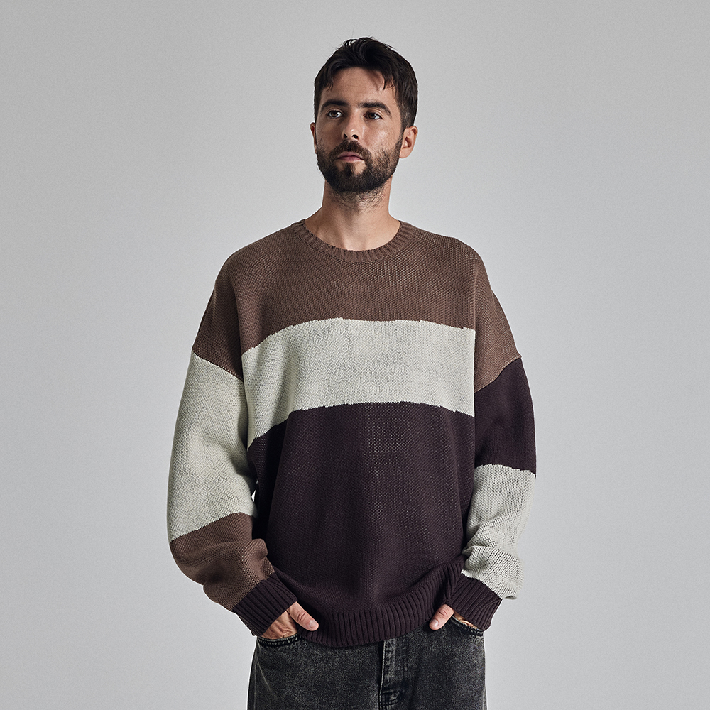 Two-Tone Skeleton Bones Round Neck Sweater_BROWN