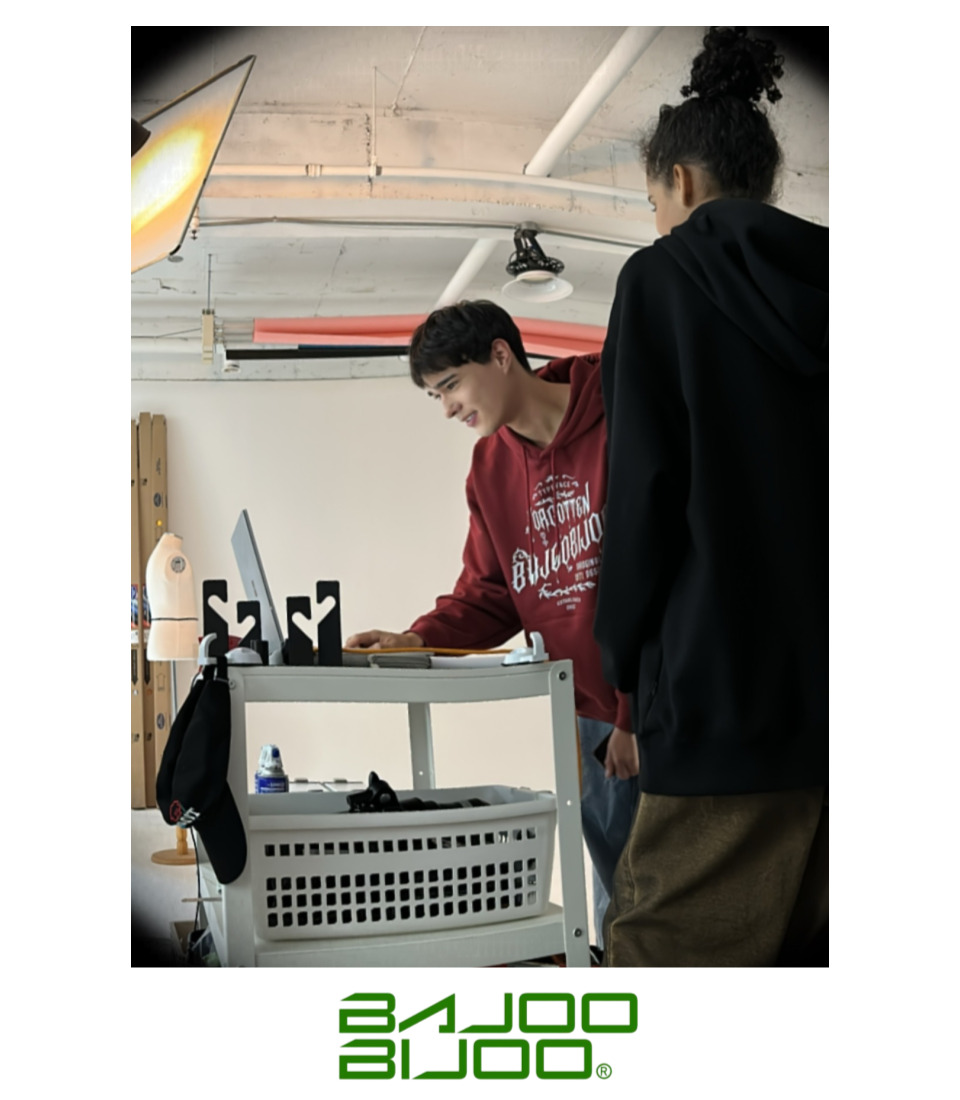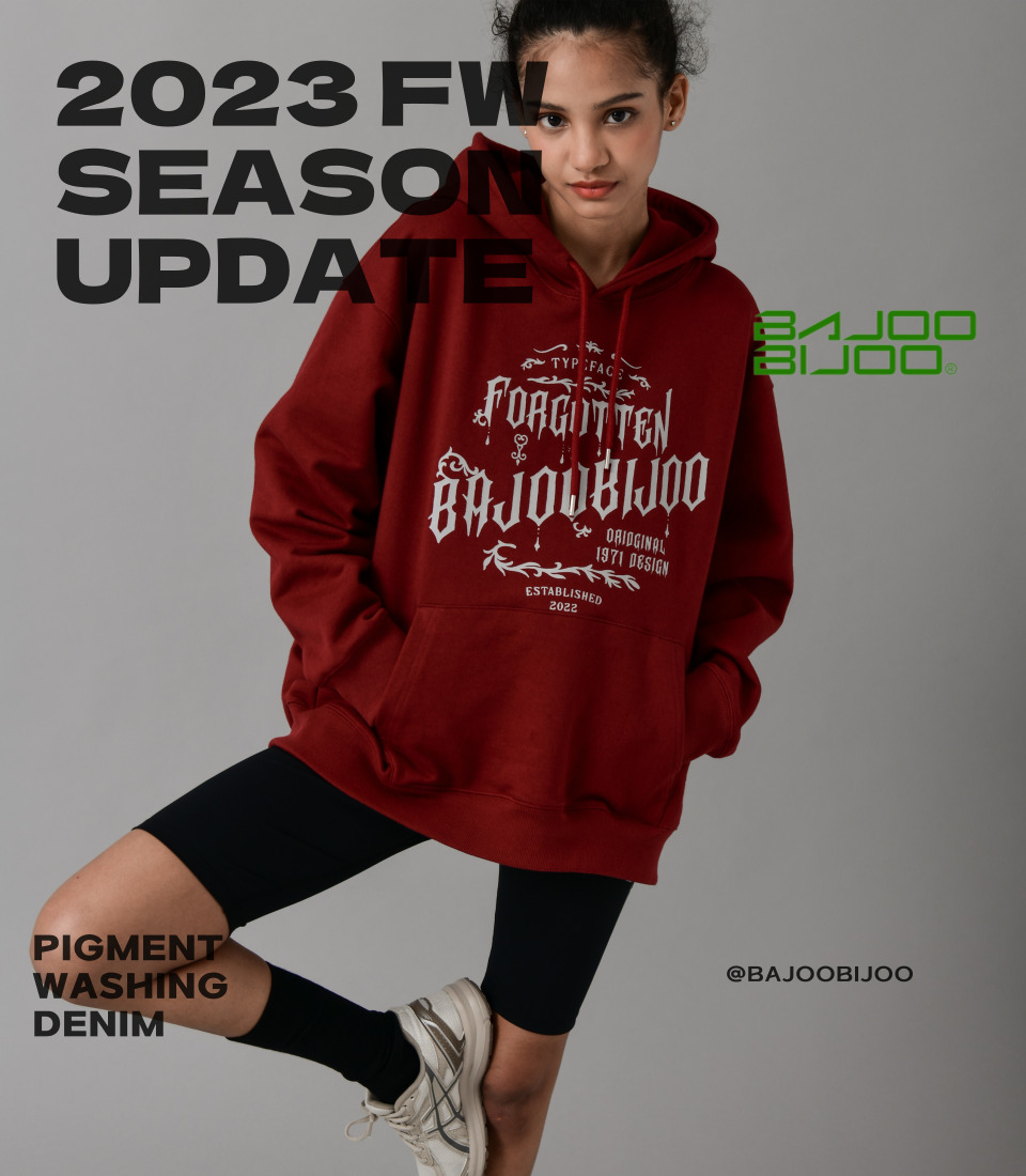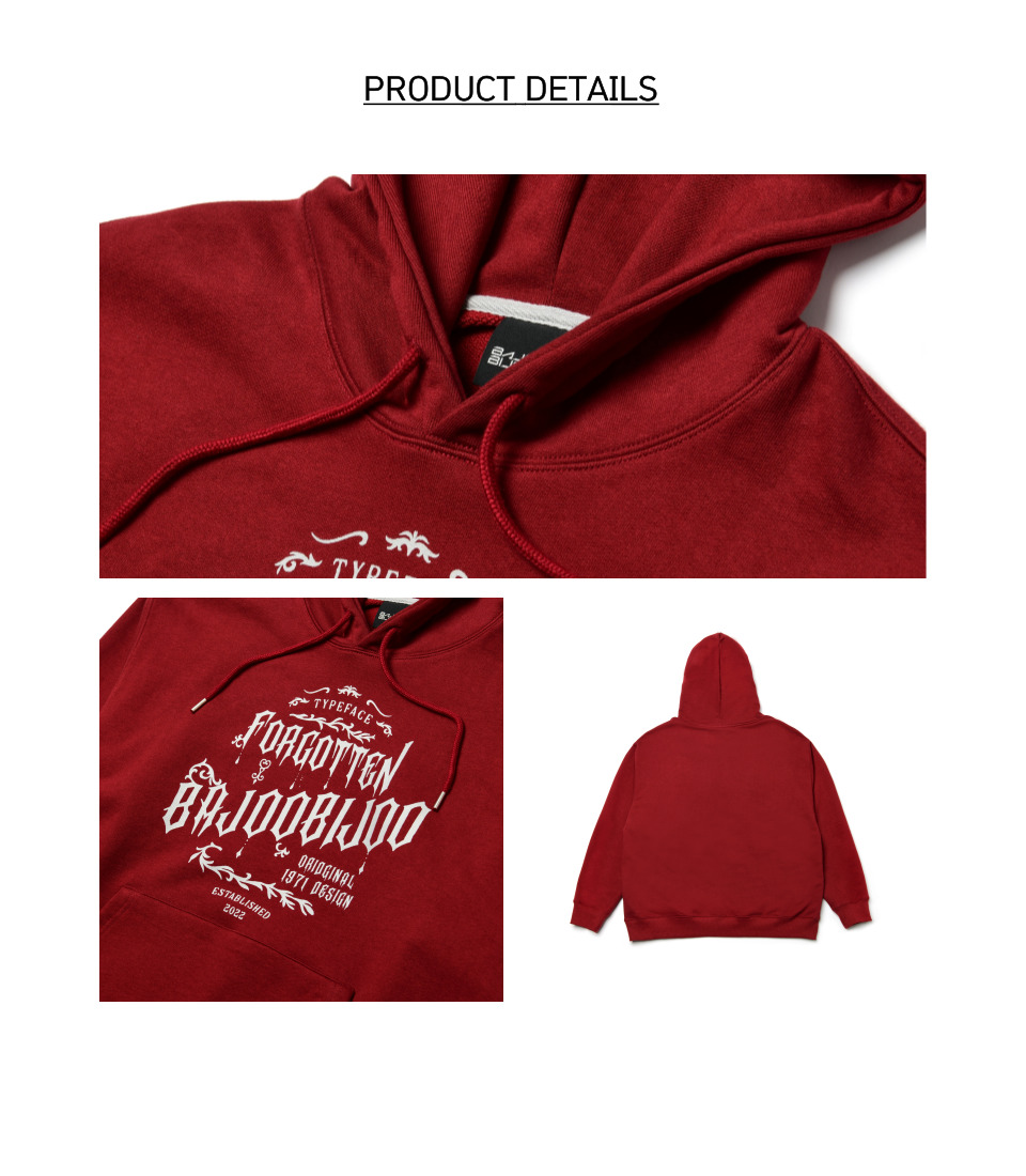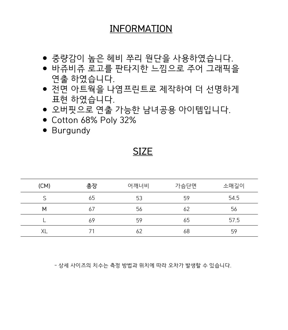 오버핏 후드 배색 엠보자수 후드