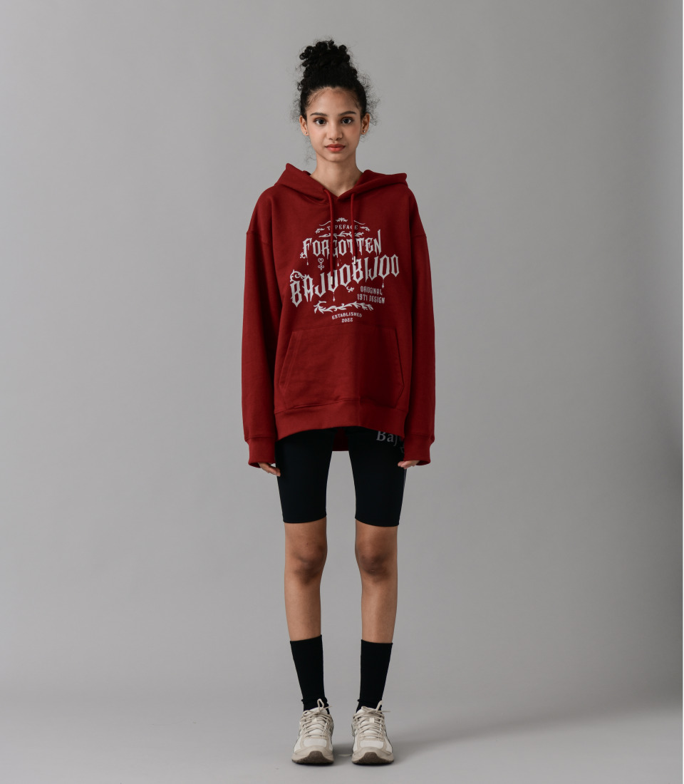 RIDING BIKE CAT 오버핏 후드 티셔츠 (와인)