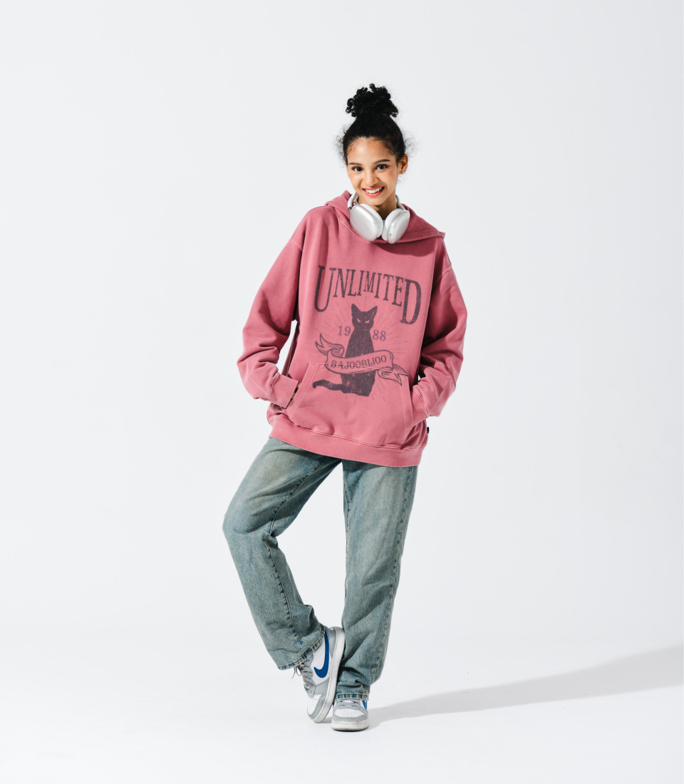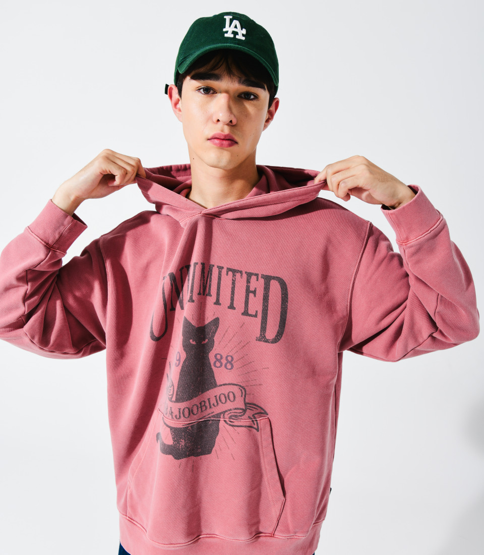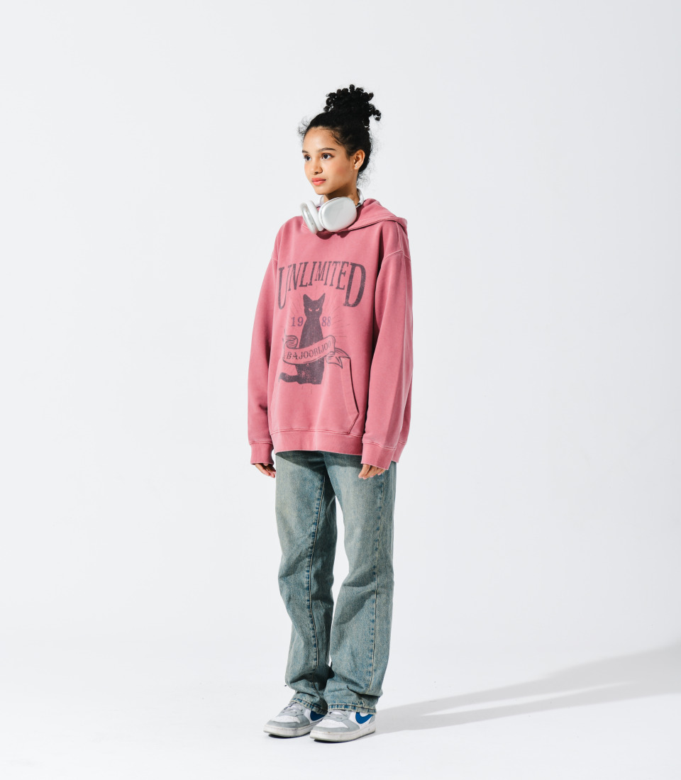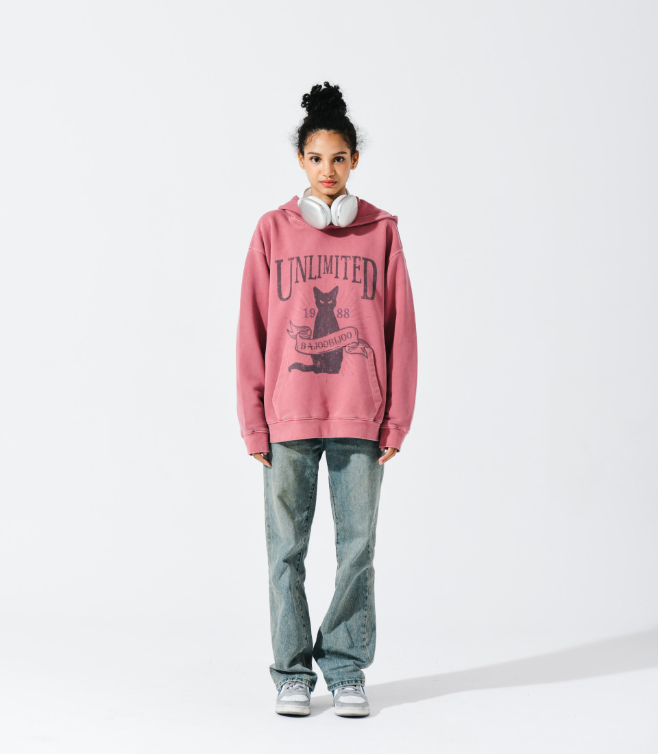 STAR CAT 오버핏 후드 티셔츠[메란지]
