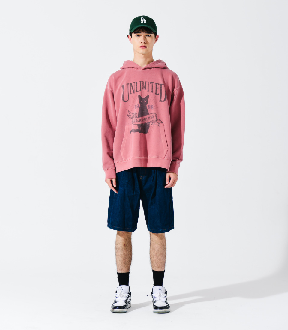 SP 가부키 캣 워싱 헤비웨이트 후드 티셔츠 그레이
