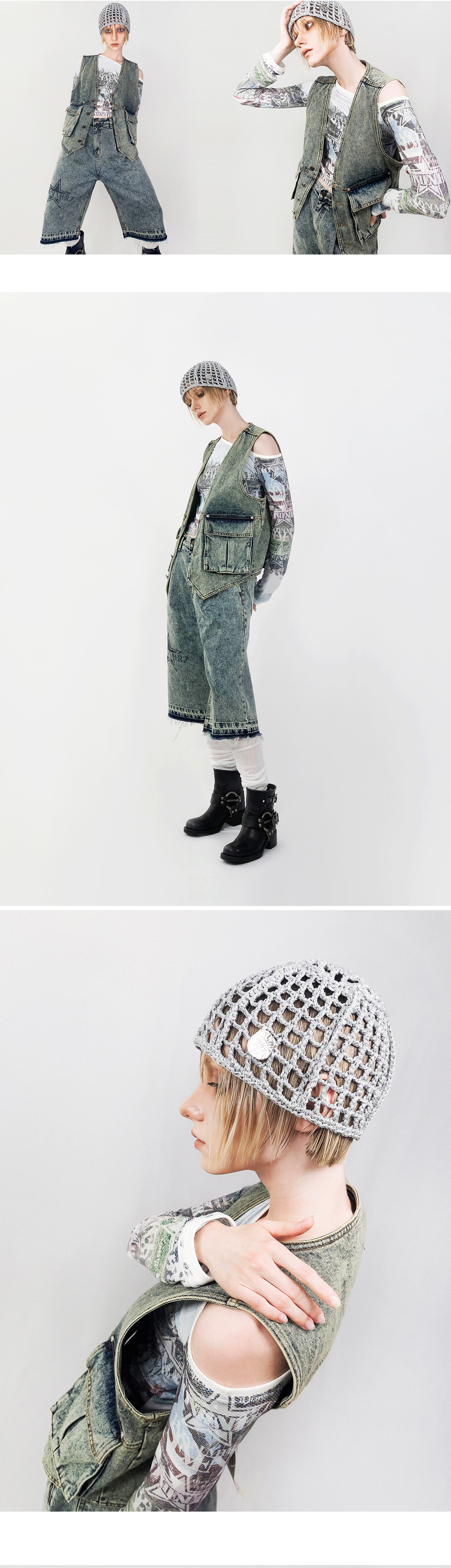 MESH VARSITY KNIT CARDIGAN_BLACK