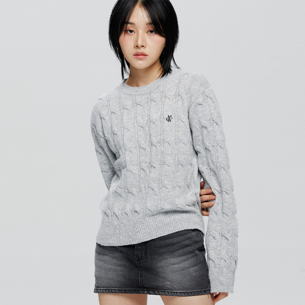 클래식하고 베이직한 꽈배기 조직과 볼드하지 않은 미디움 사이즈의 패턴으로 캐주얼한 디자인의 브이넥라인 니트 가디건 입니다.