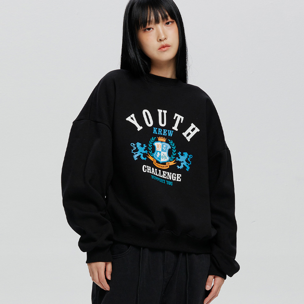 우먼즈 크롭 베어프렌즈 엠보자수 맨투맨 블랙(FCB3TS355W)