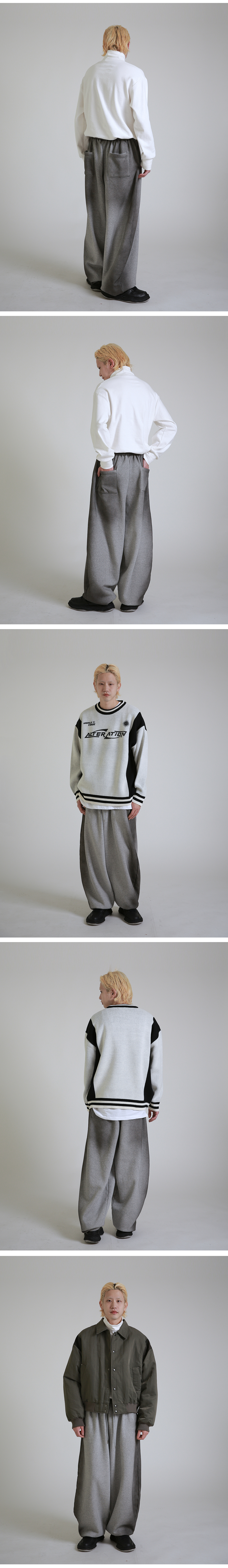 Two Tuck Double Napping Sweat Wide Pants - Melange Gray (Fleece)