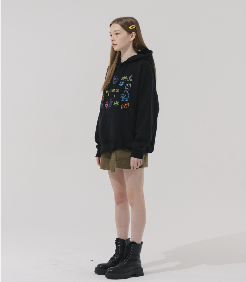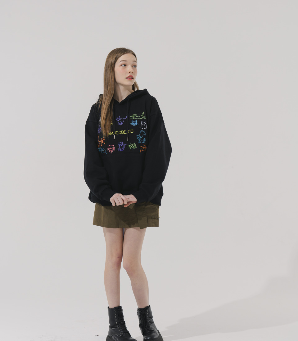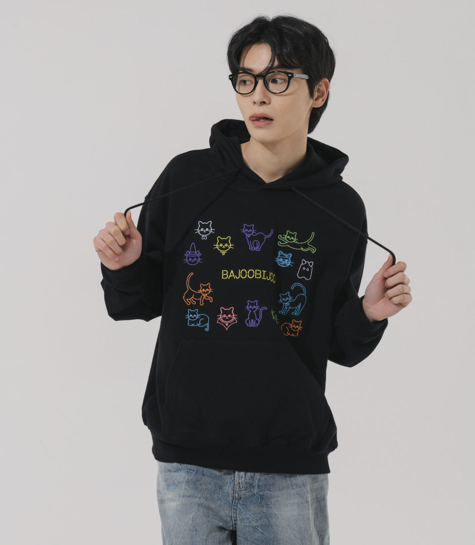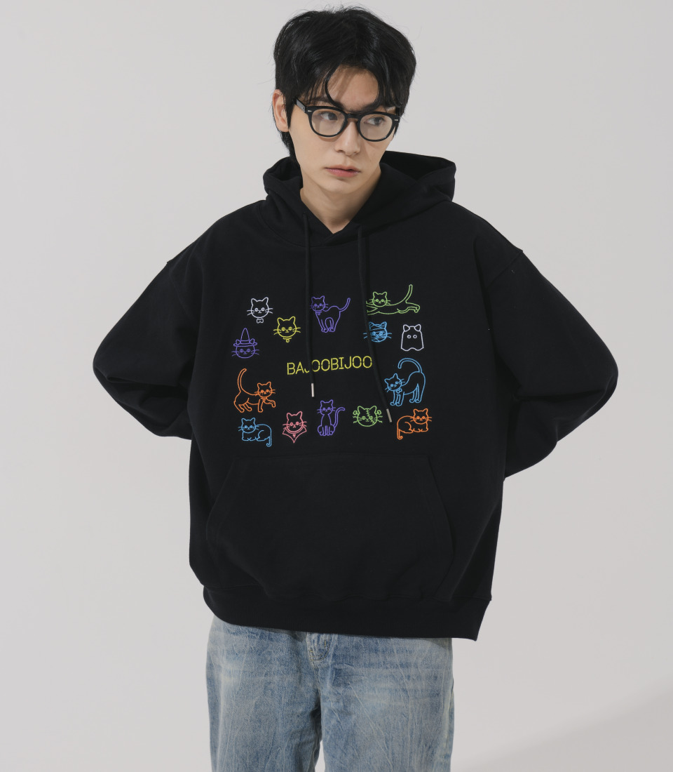 오버핏 후드 배색 엠보자수 후드 블랙(FCF3TS645M)