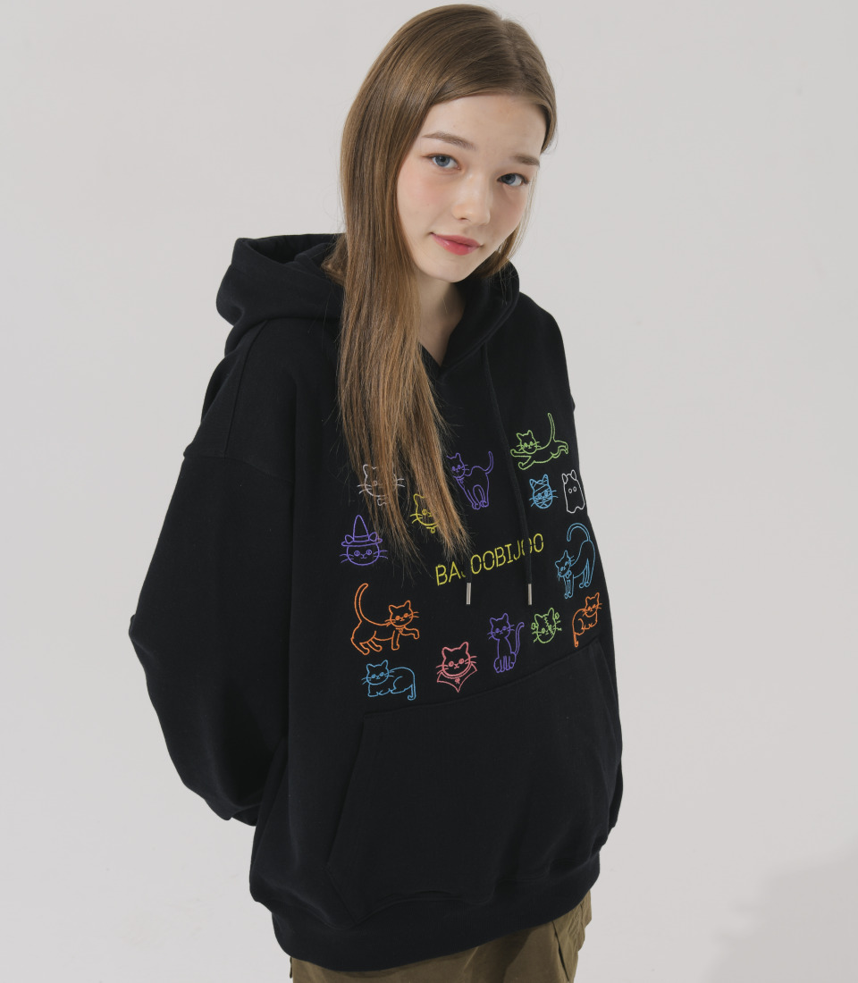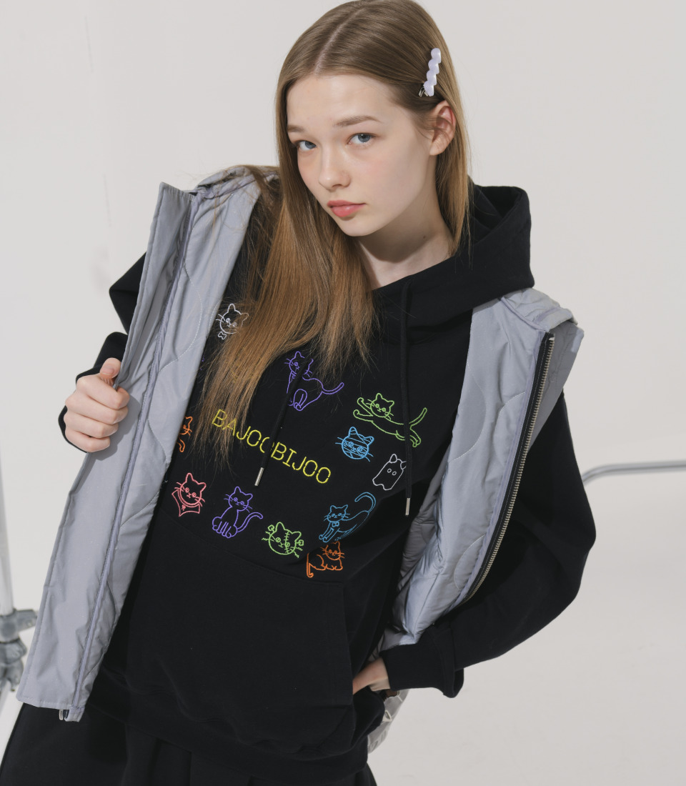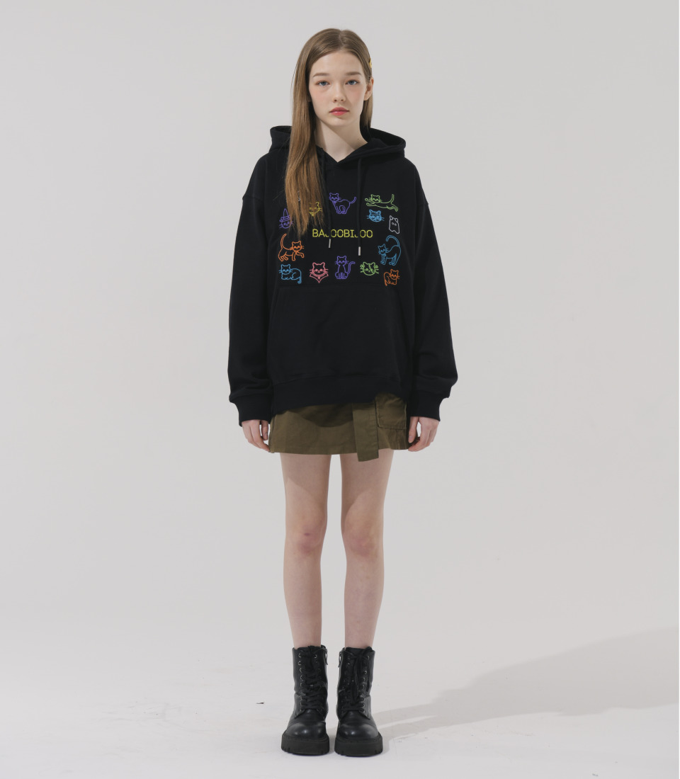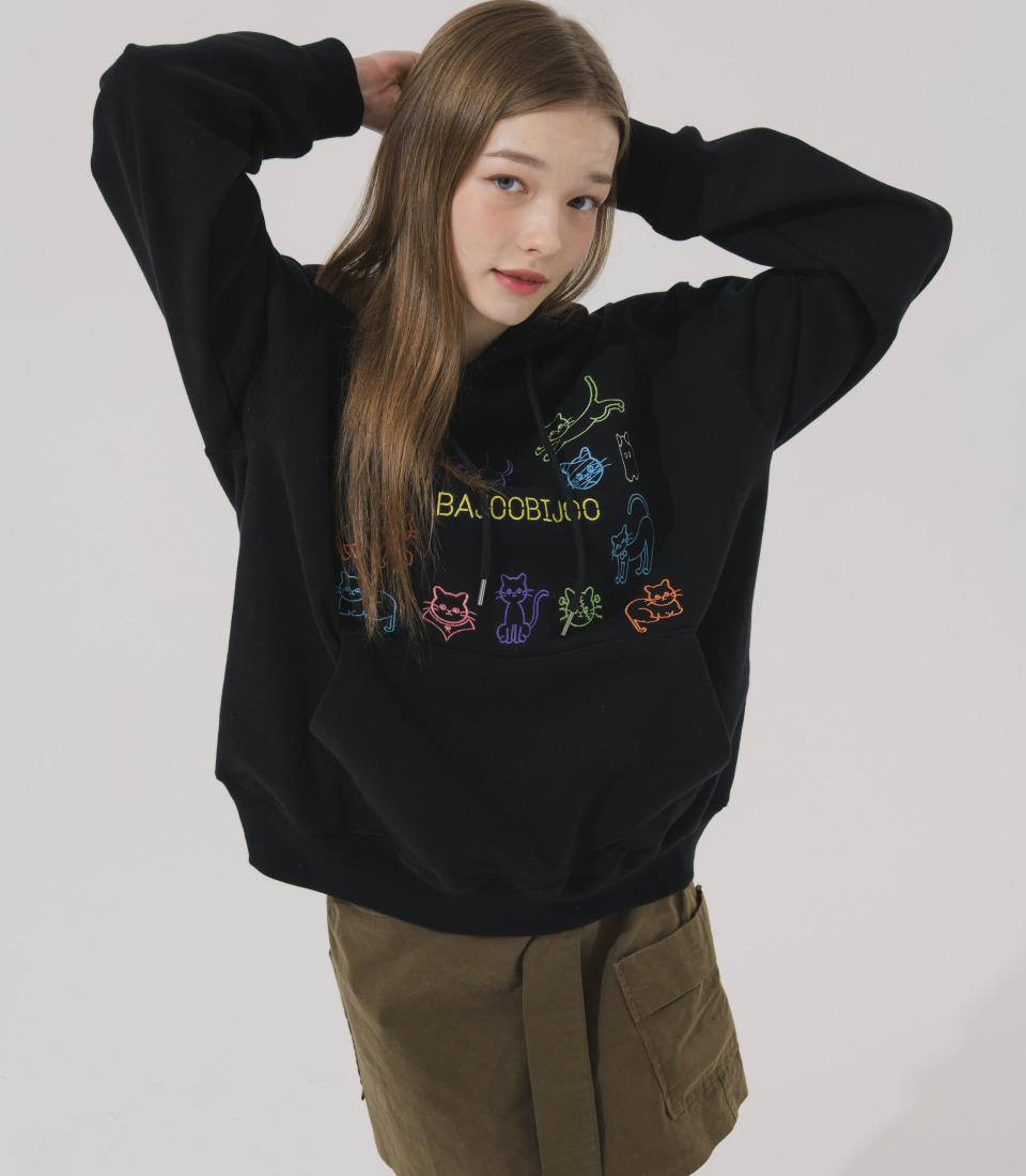 오버핏 후드 배색 엠보자수 후드 블랙(FCF3TS645M)