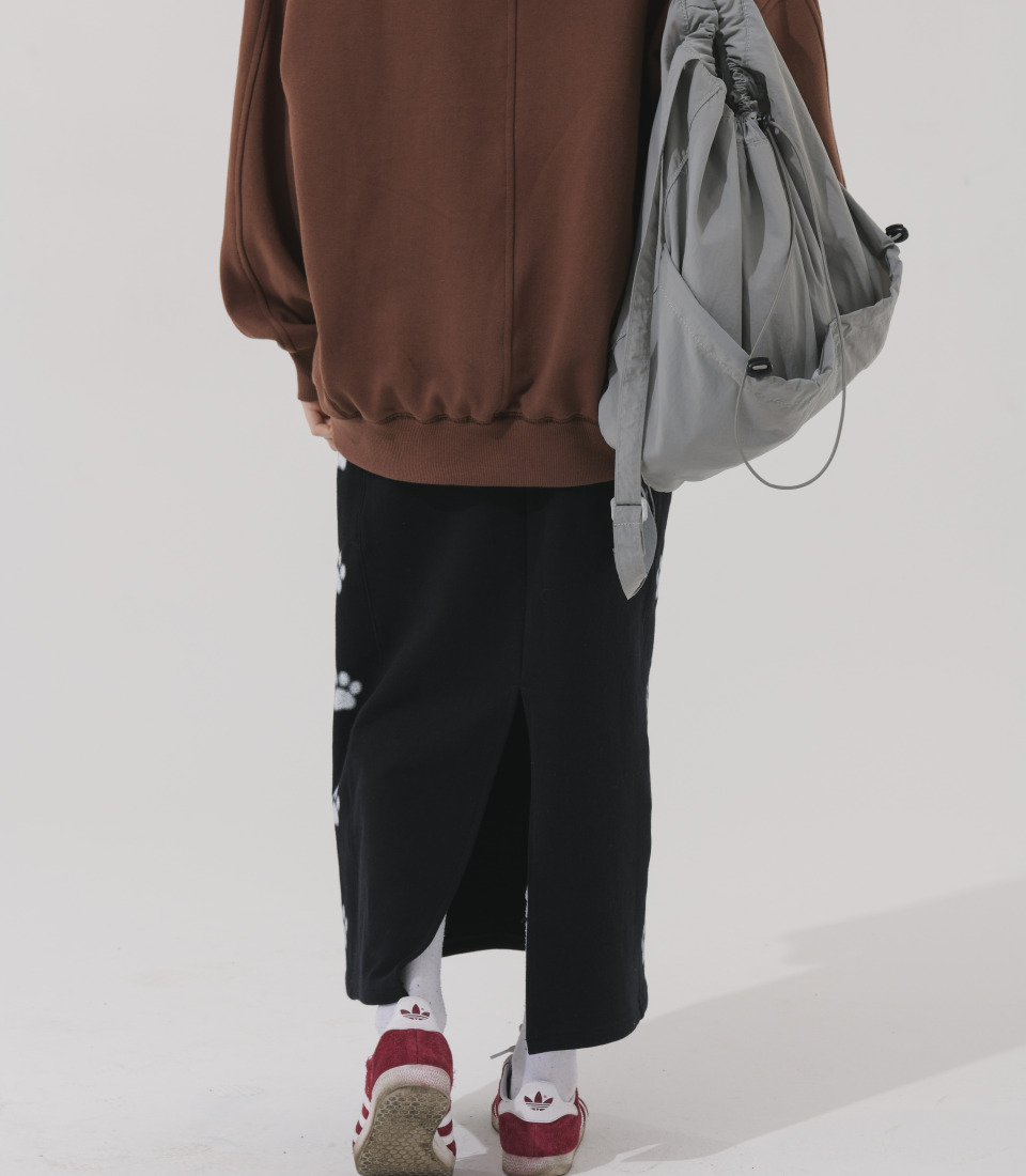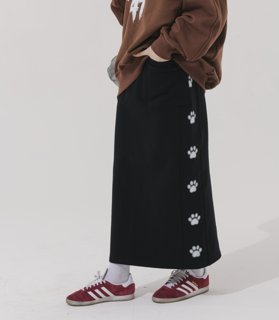 2WAY 앞지퍼 디테일로 다양한 스타일 연출 가능한 하이웨스트 디자인의 맥시 롱 스커트 입니다.