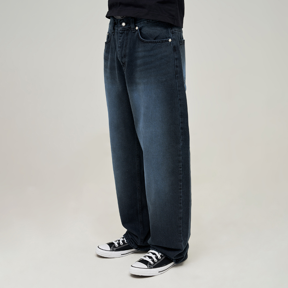 뒷주머니 지퍼 포켓이 포인트인 와이드 데님