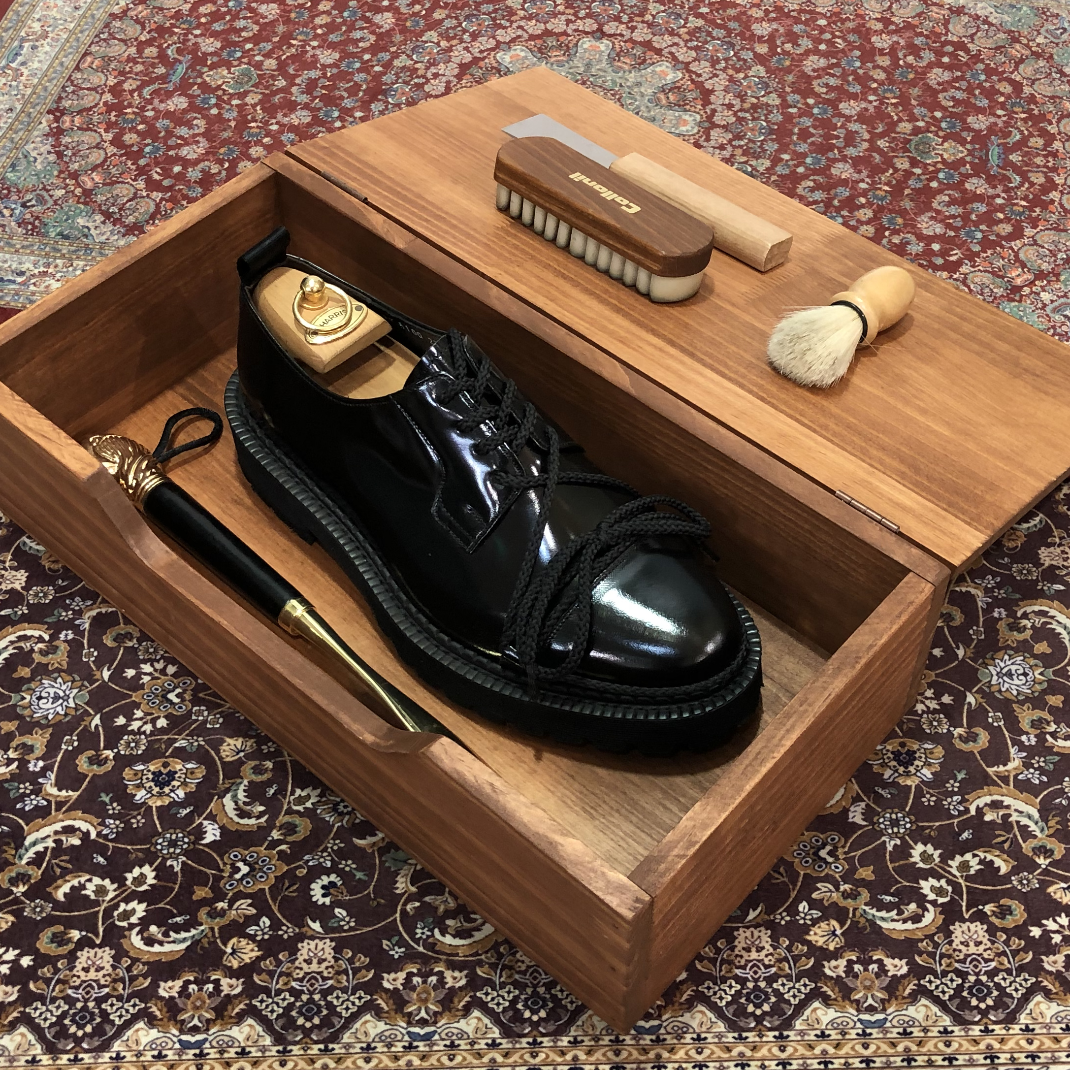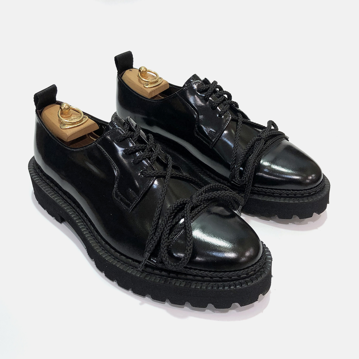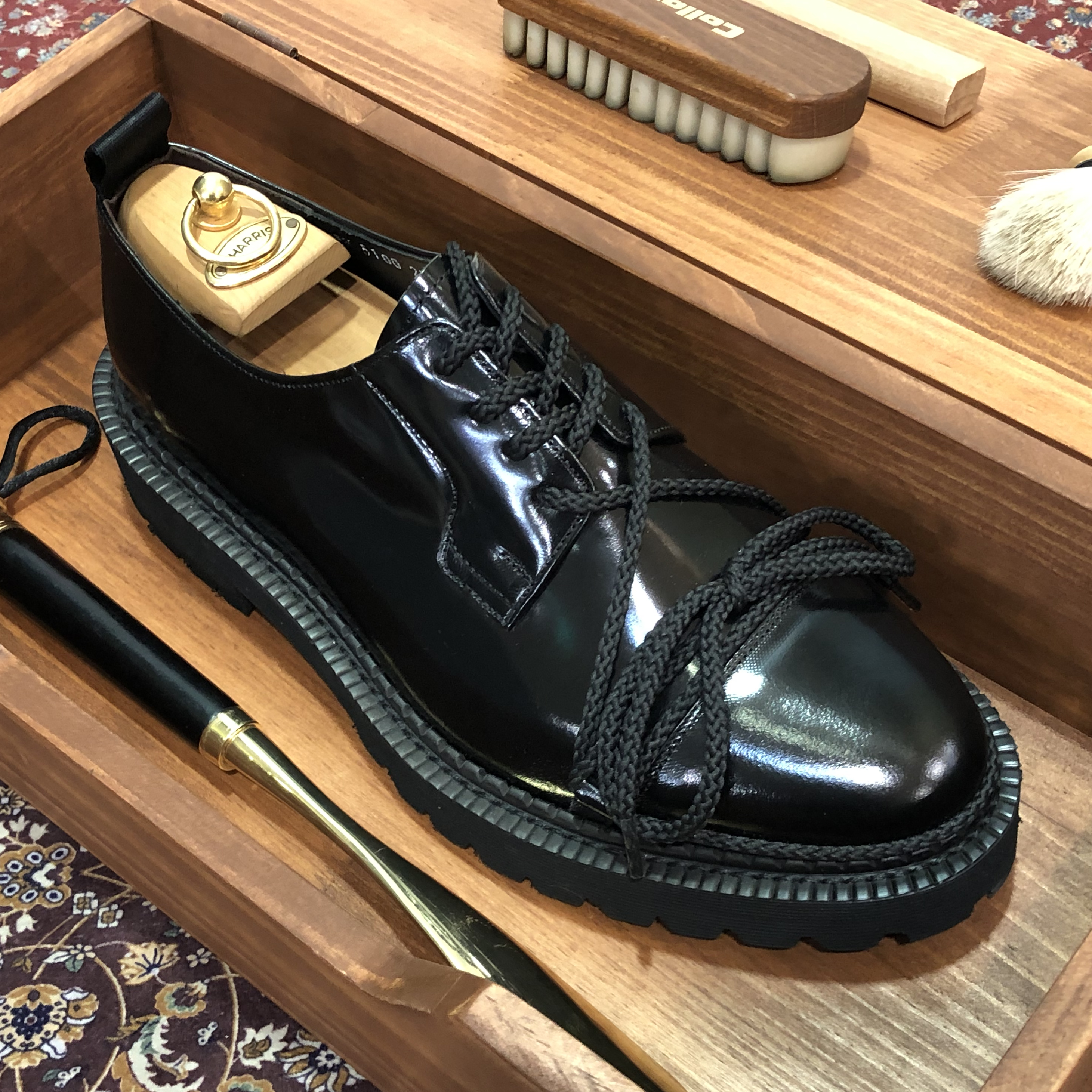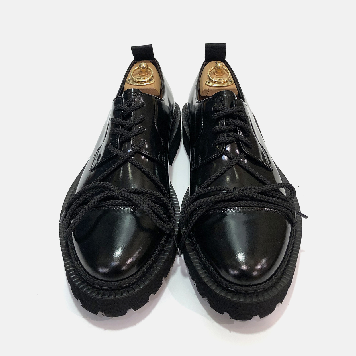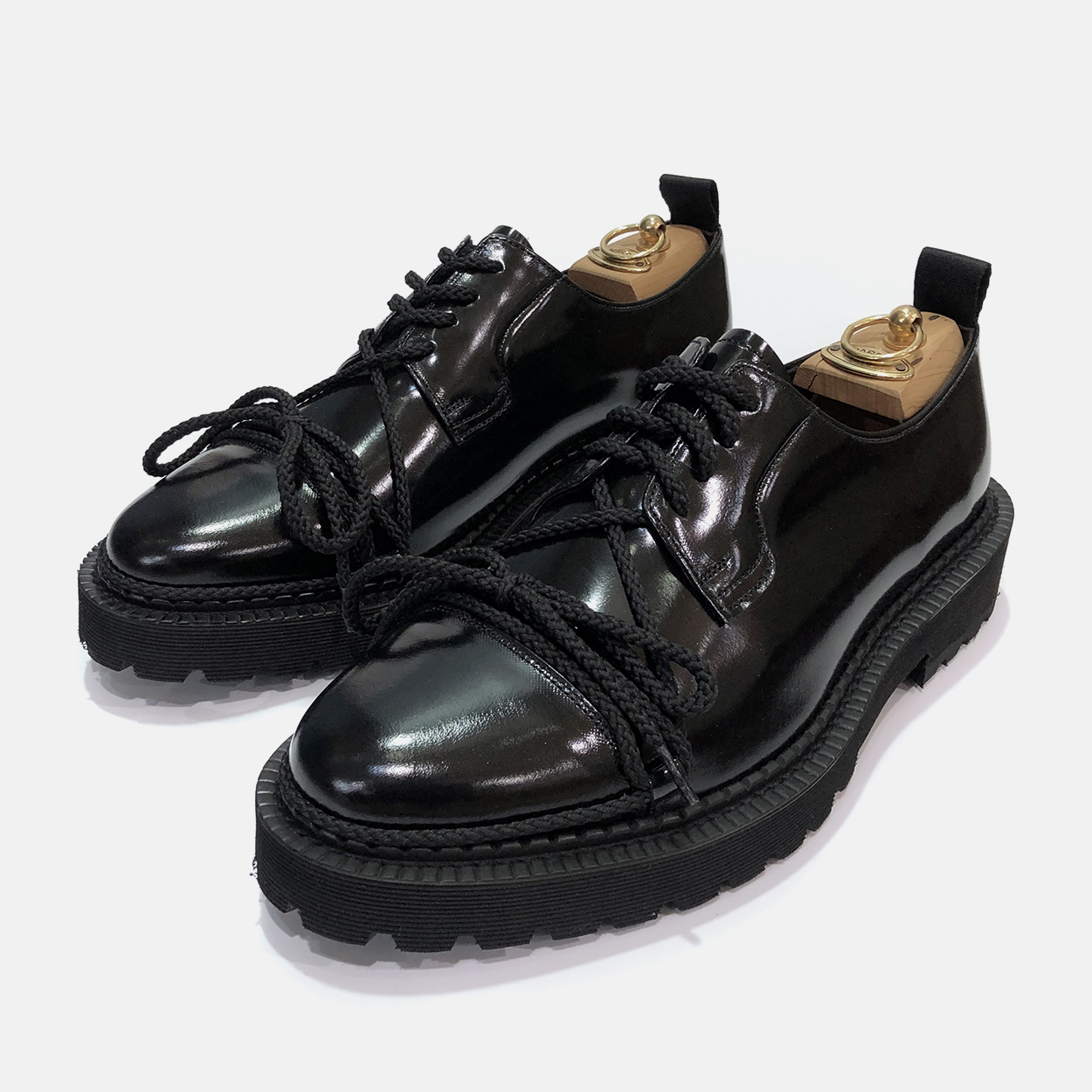 : 유광 블랙 소가죽으로 세련되고 고급스러운 외관을 제공합니다.