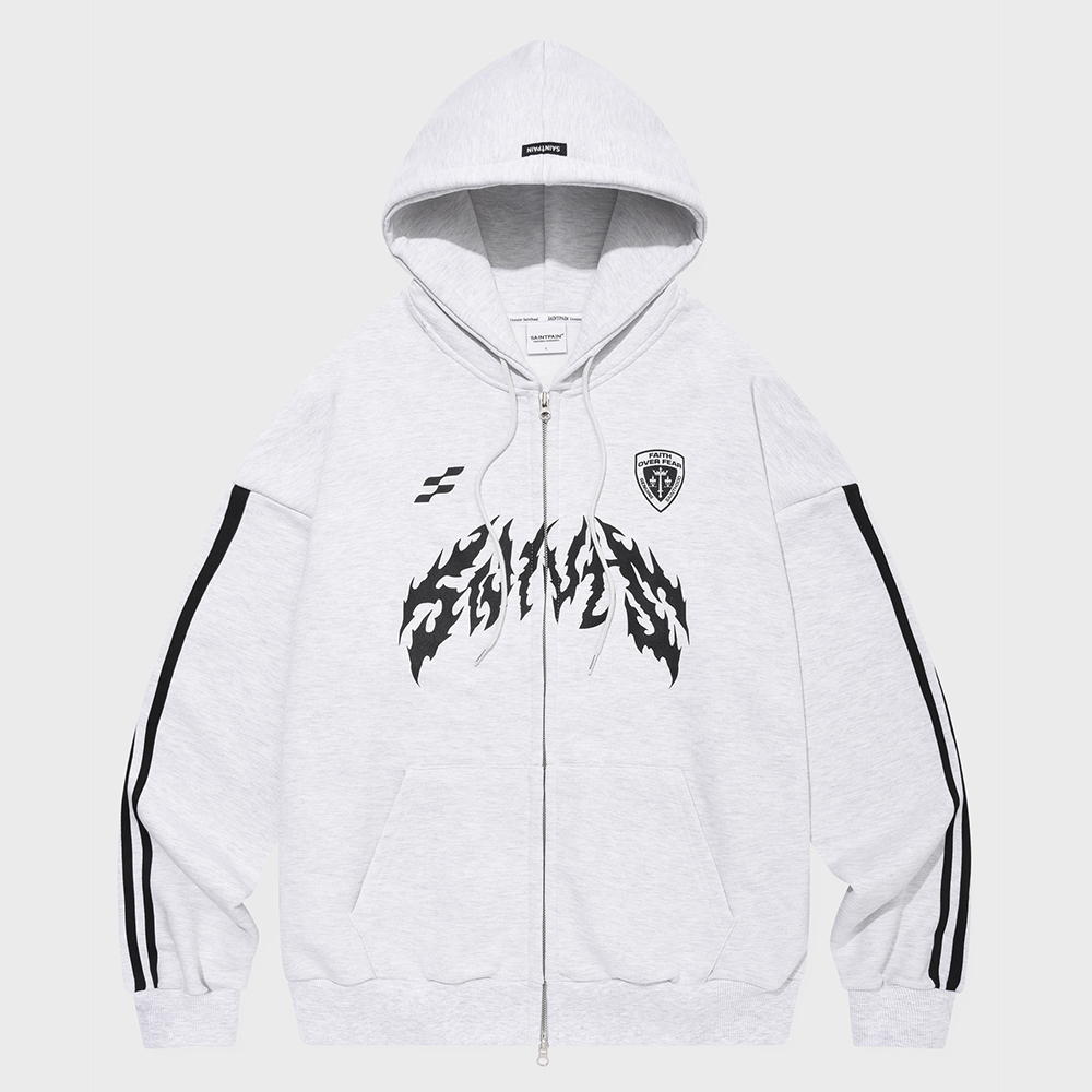 UNISEX Two-Tone Blur Embossed Logo Zip-Up Hoodie Oatmeal (FCF1ZP323M)