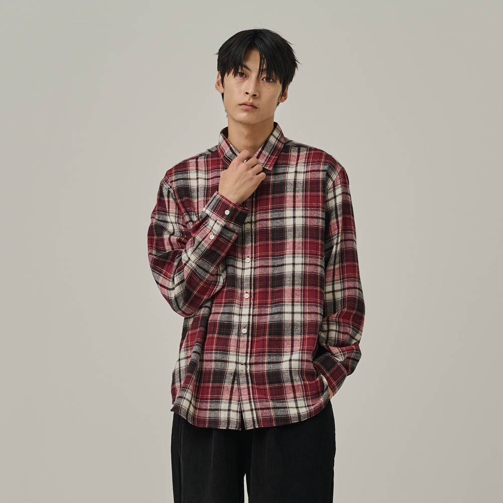 Gothic Cross Ombre Check Oversized Shirt ((black/beige)