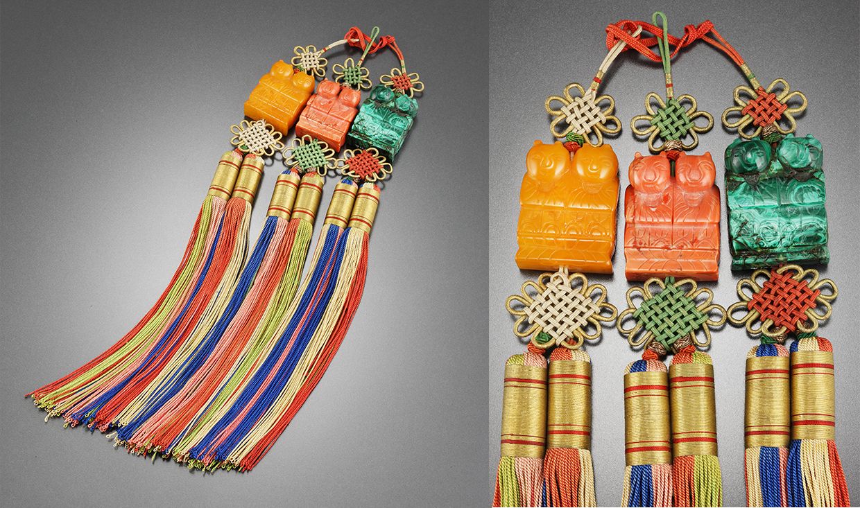 <영친왕비 밀화, 산호, 공작성 쌍동자 삼작노리개, 출처: 고궁박물관>
