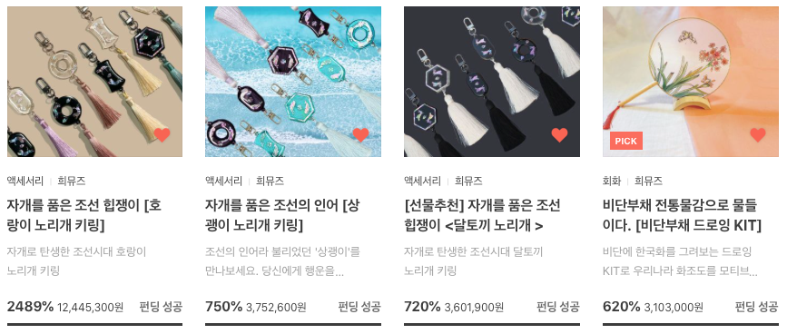 지난 희뮤즈 펀딩에서 '자개를 품은 호랑이 노리개'는 2489%라는 놀라운 달성률을