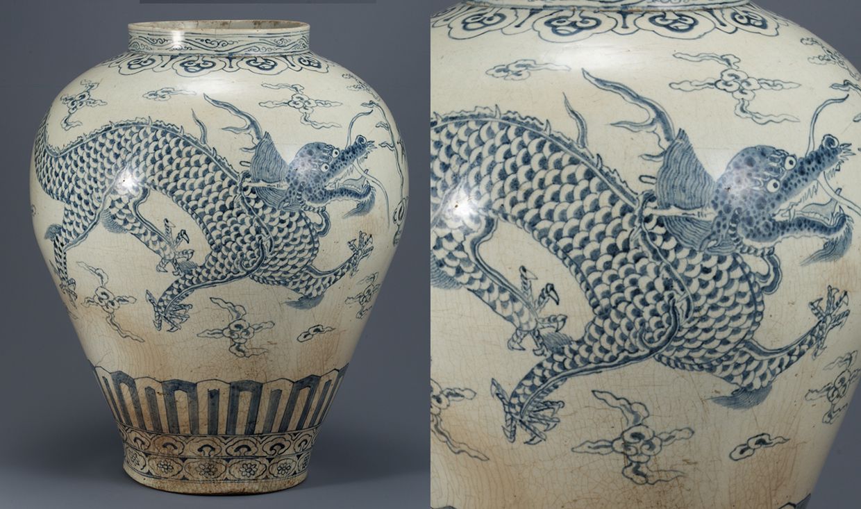 “신수(神獸)인 용이 당신의 소원을 이뤄줄 거예요."<백자 청화 구름 용 무늬 항아리, 출처: 국립중앙박물관>