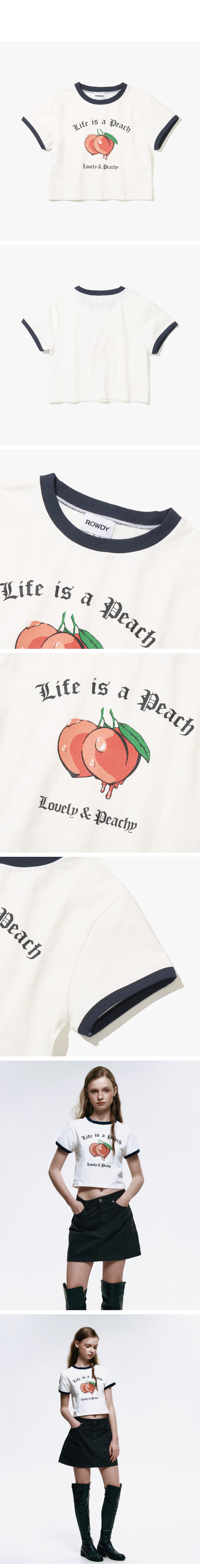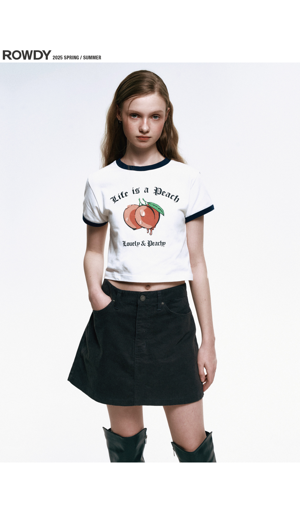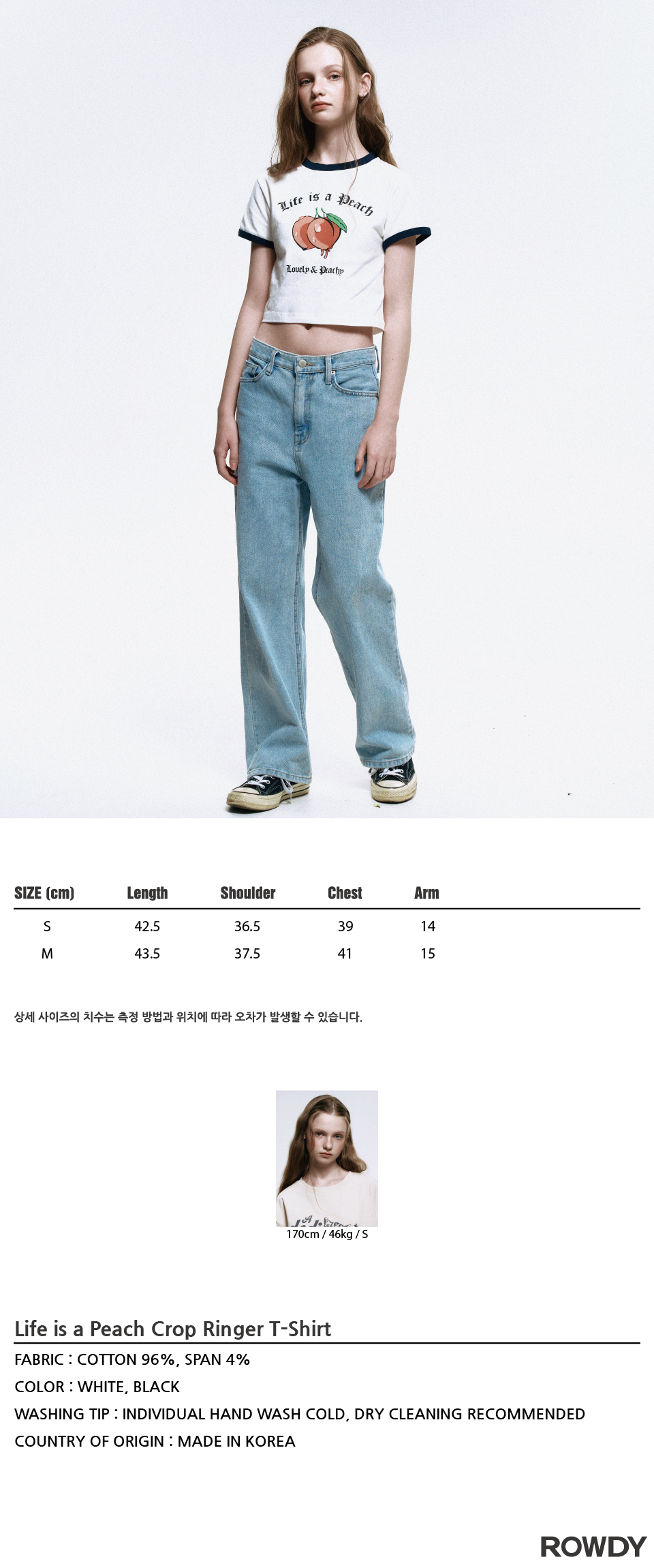 키치하고 캐주얼한 무드의 크롭 링거 티셔츠 입니다.