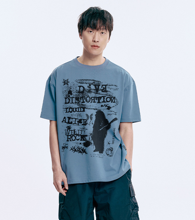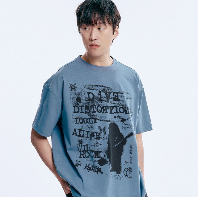 가벼운 소재로 그래픽이 특징인 스트릿 캐쥬얼 반팔티셔츠