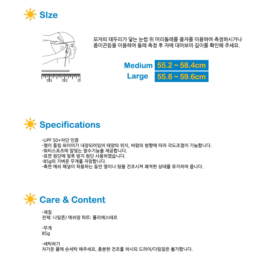 안정적인 각도의 챙이 자외선을 더욱 효과적으로 차단! 낚시, 하이킹, 일상에서 모두 착용 가능한 버킷햇!