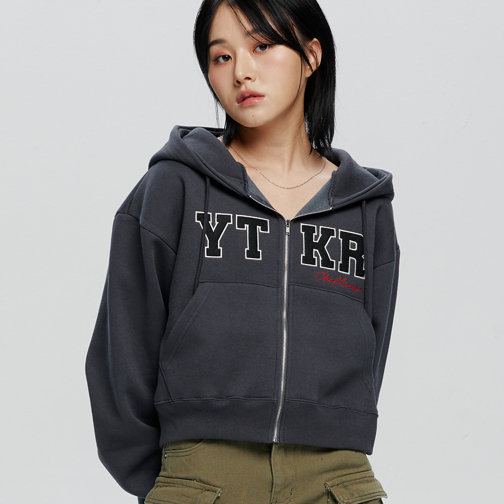 2-WAY Ribbon Crop Knit Zip-up Charcoal