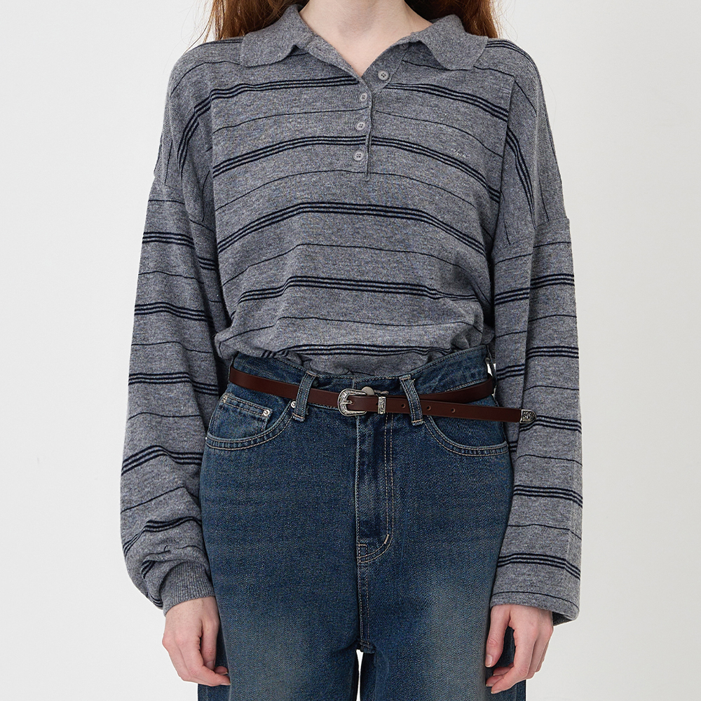 M23 Narrow Square Buckle Fake Leather Belt Black