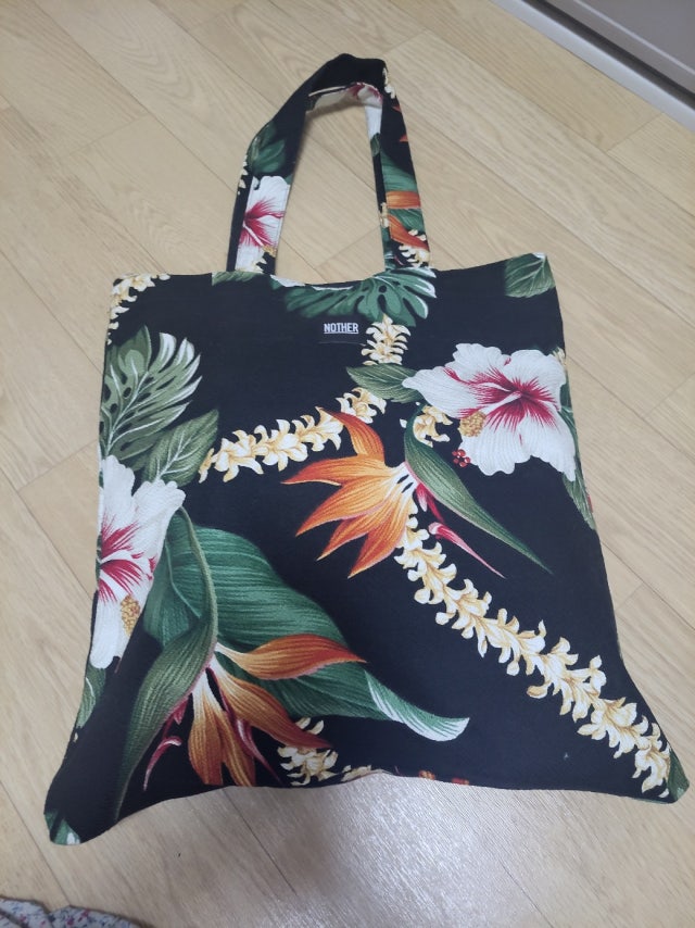 오랜기간 고품질 패브릭과 빈티지 하와이안 그래픽을 고수하는 하와이 현지 패브릭사의 원단을 적용한 nother의 하와이안 라인 플랫 토트백입니다.