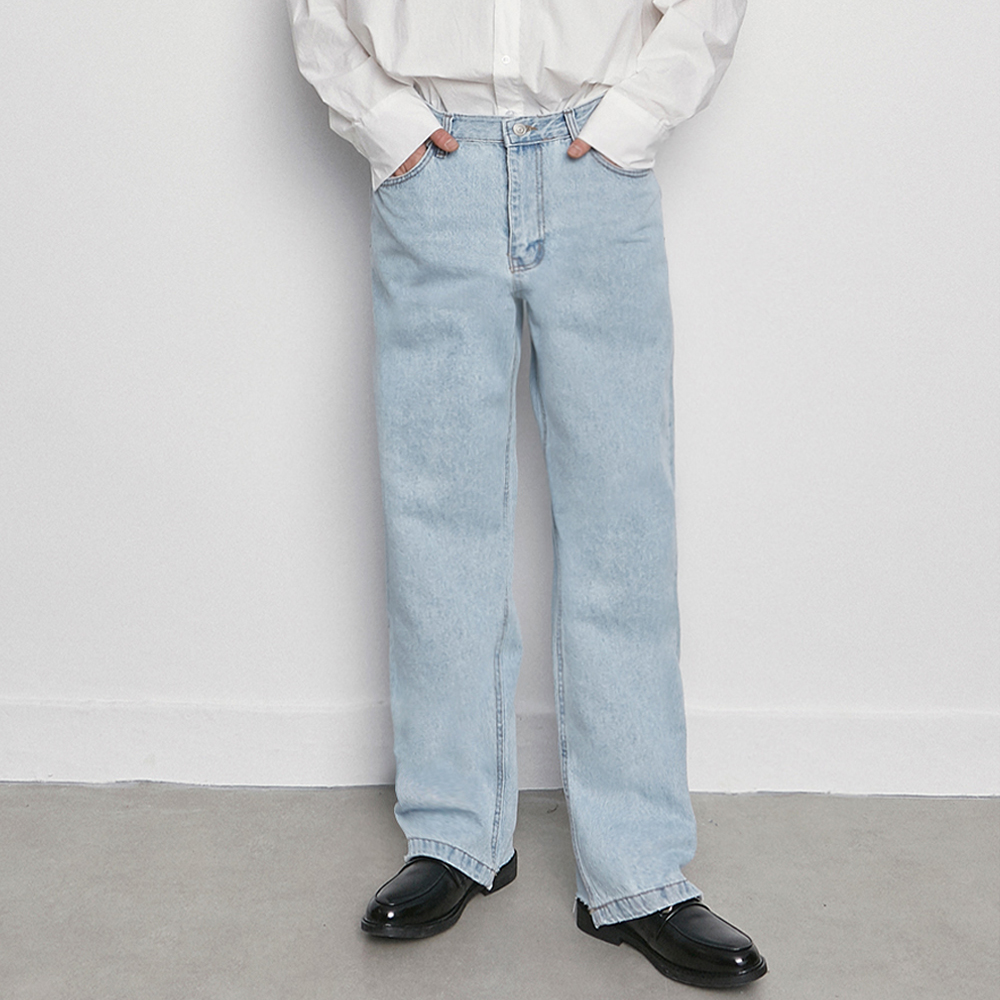 TWIST INCISION WASHING DENIM PANTS(SAND BLUE)