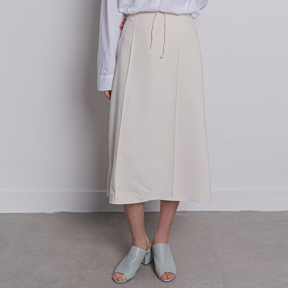 MIDI SHIRRING RIBBON DENIM SKIRT