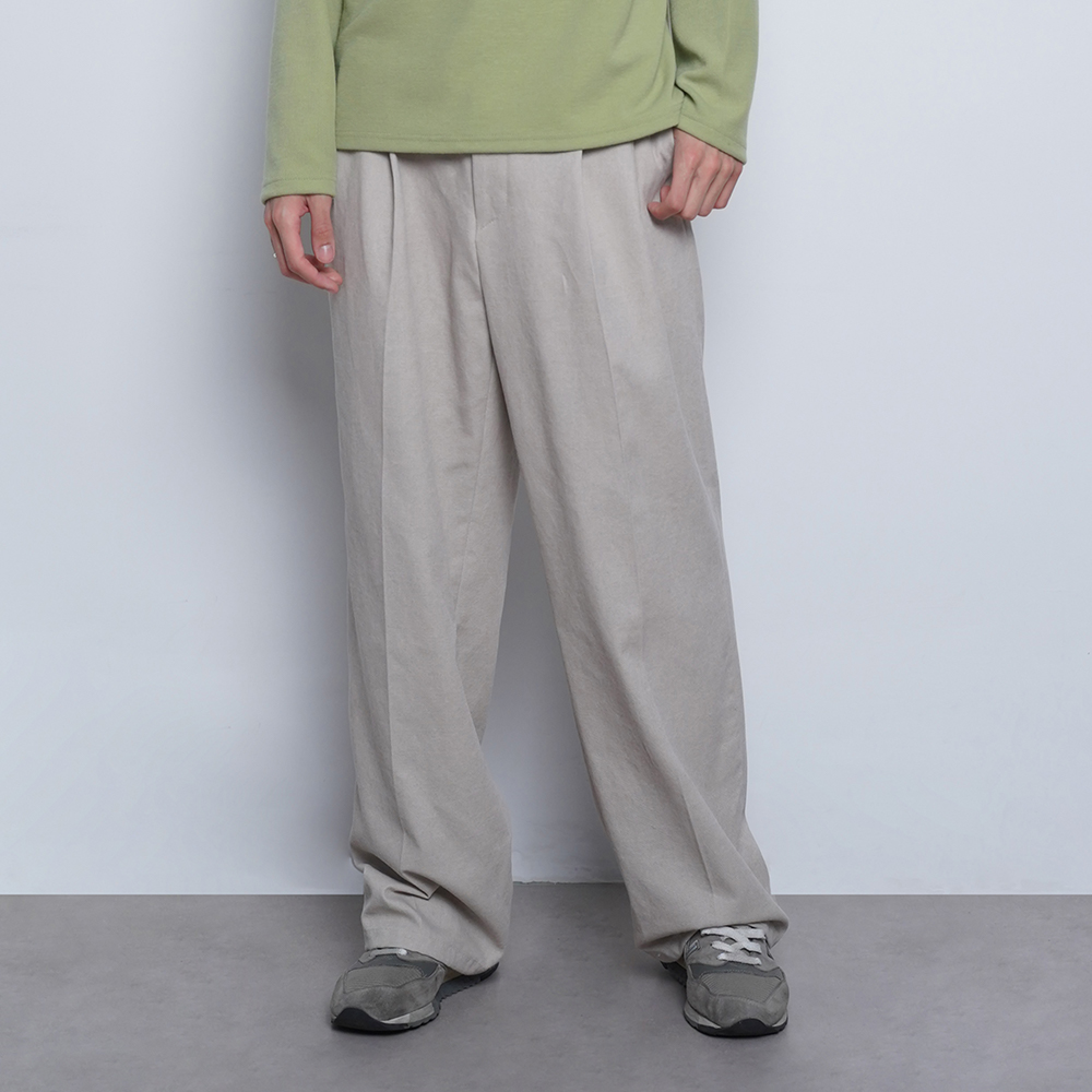 Fleece Bonding Corduroy Wide Pants ((Charcoal))
