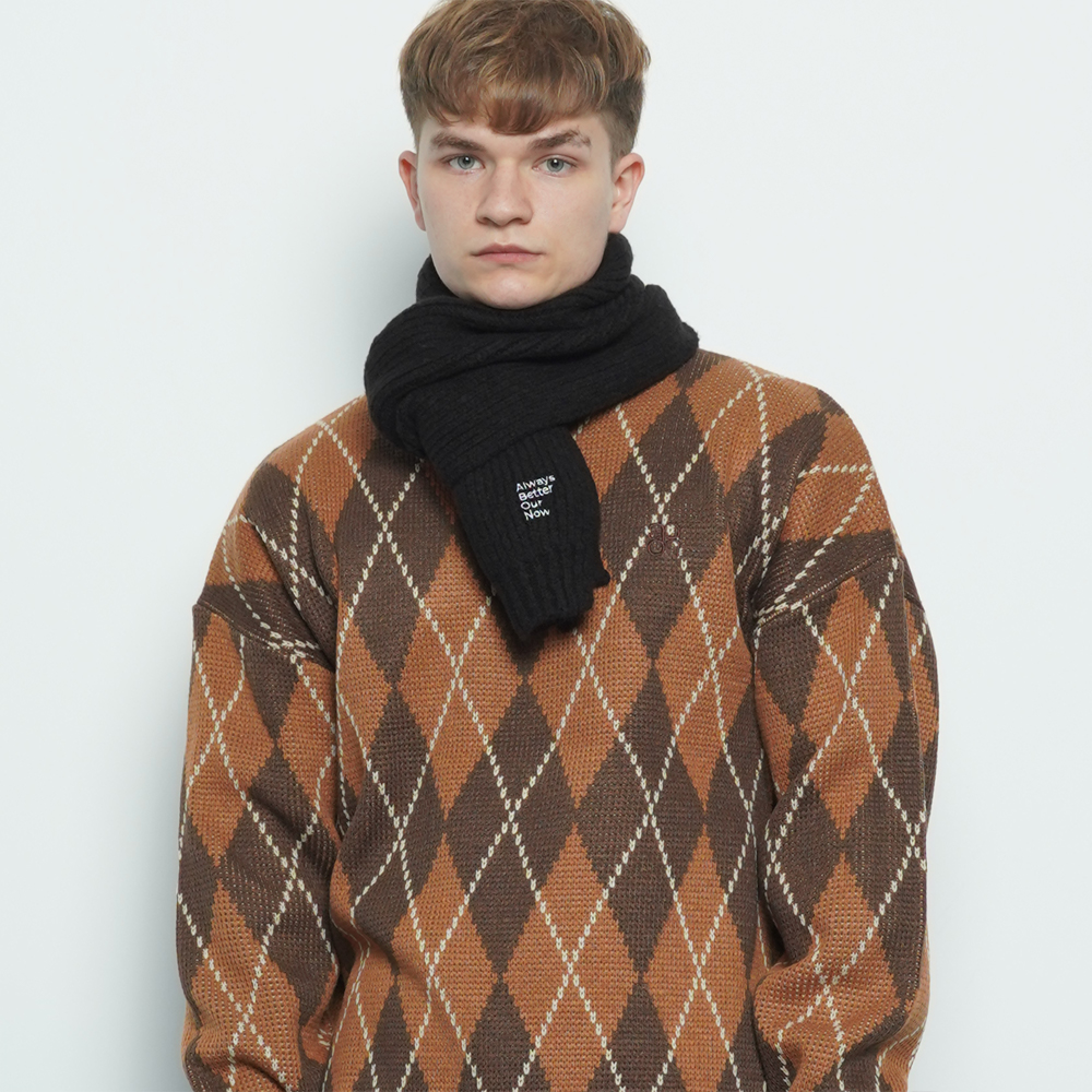 유니크한 스트라이프 디자인의 타이 니트 머플러