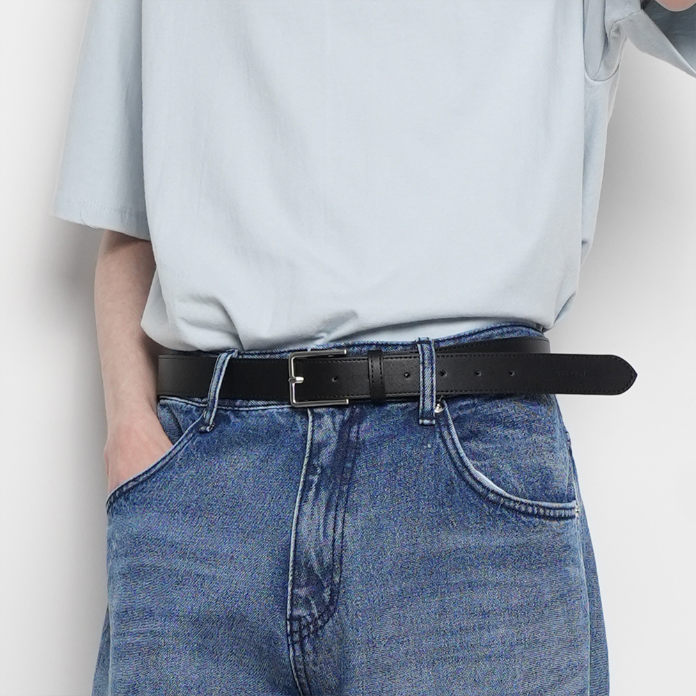 M23 Narrow Square Buckle Fake Leather Belt Black
