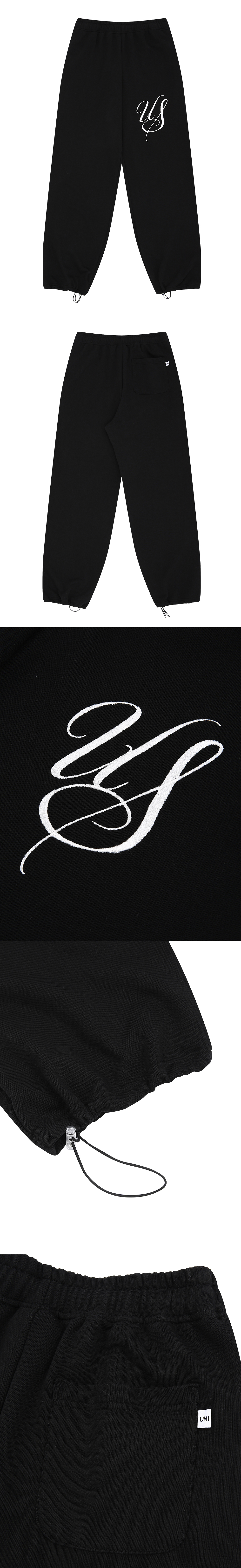 Metal Tip Drawstring Jogger Pants Black
