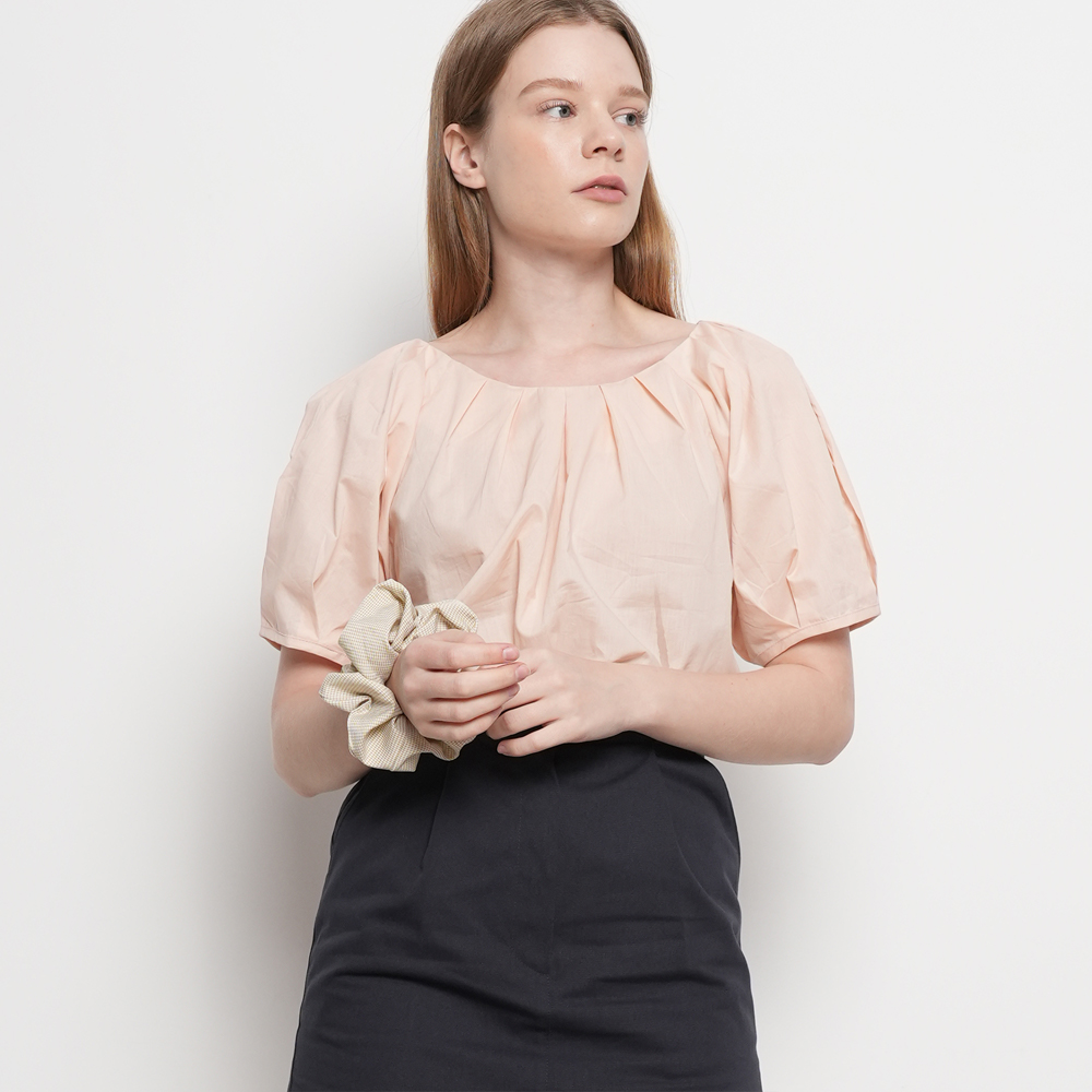 사랑스러운 룩의 완성도를 높이는 셔링 디테일 반팔 셔츠