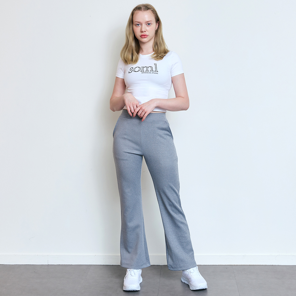 스커트를 덧댄 듯한 유니크한 디자인의 밴딩 팬츠