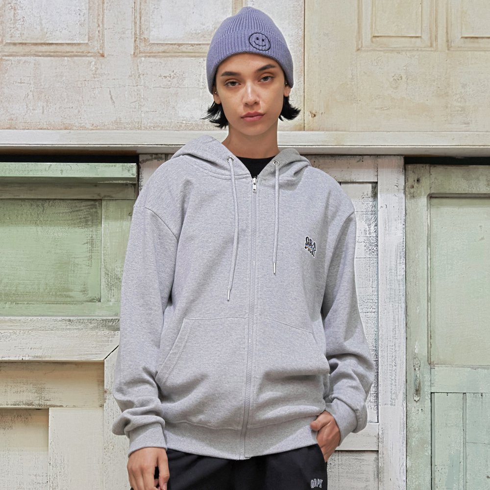 Oversized Plain Two-way Hoodie Zip-up (Light Melange)