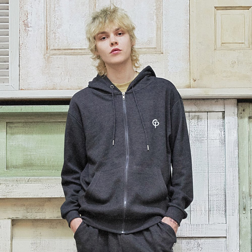 Skrr Painting Sweat Hood Zip-up ((melange gray))