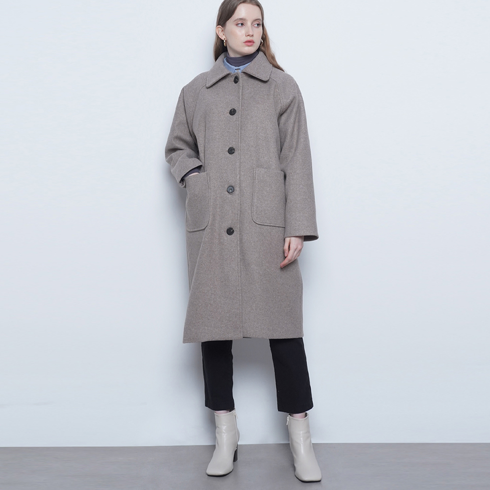 다양한 이너와 스타일링 가능한 여유로운 핏인 에코 레더 소재의 롱 무스탕 코트입니다.