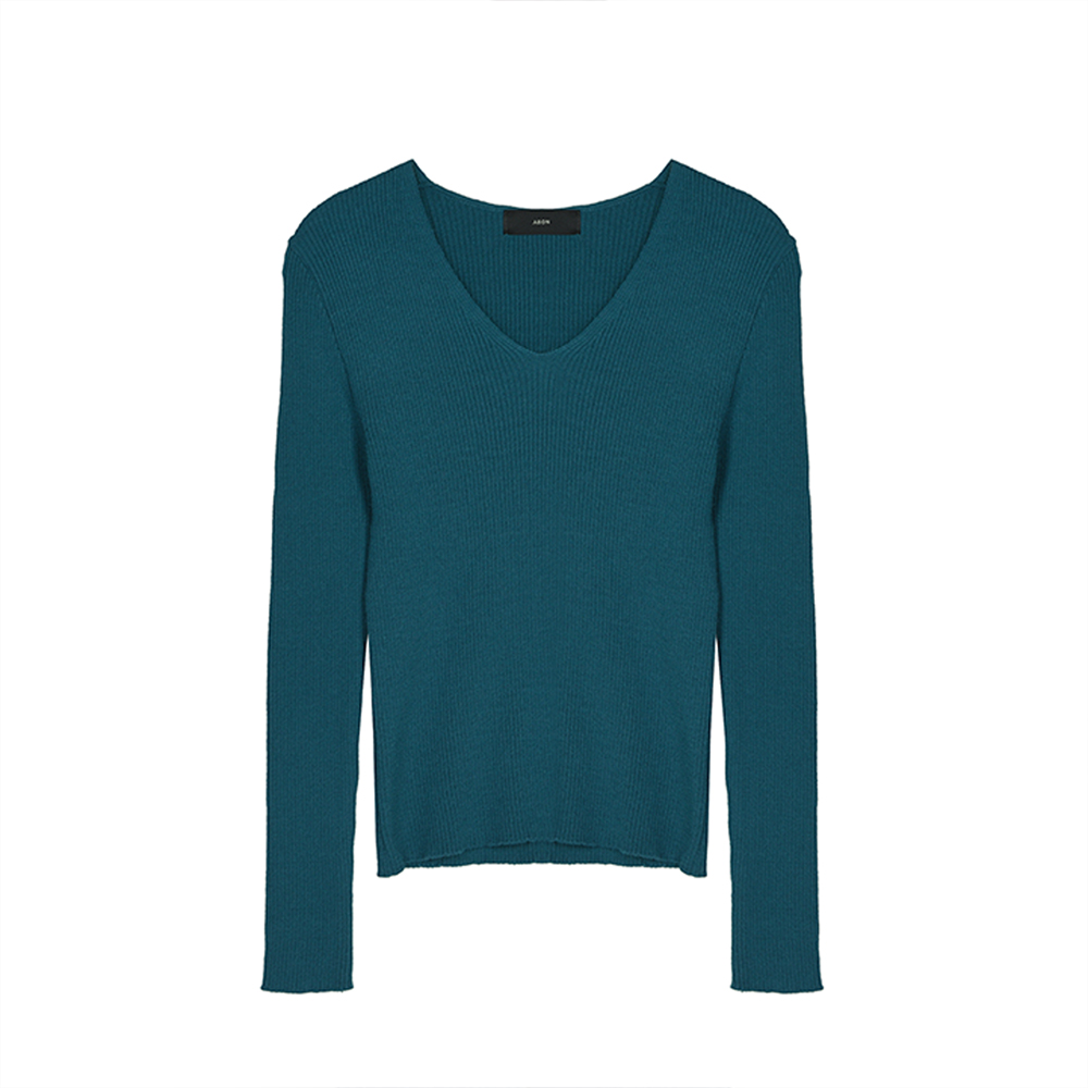 넓은 플랩 형태의 넥라인과 함께 골지 원단의 신축성으로 바디라인을 잡아주어 슬림핏으로 페미닌한 느낌을 주는 니트입니다.