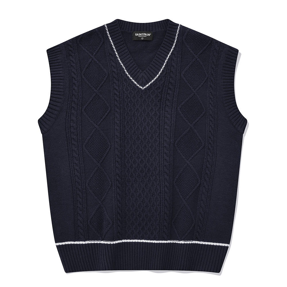 MESH VARSITY KNIT CARDIGAN_BLACK