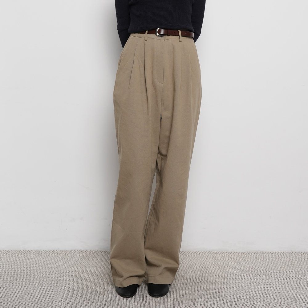 미니멀한 무드의 와이드 실루엣 원턱 팬츠