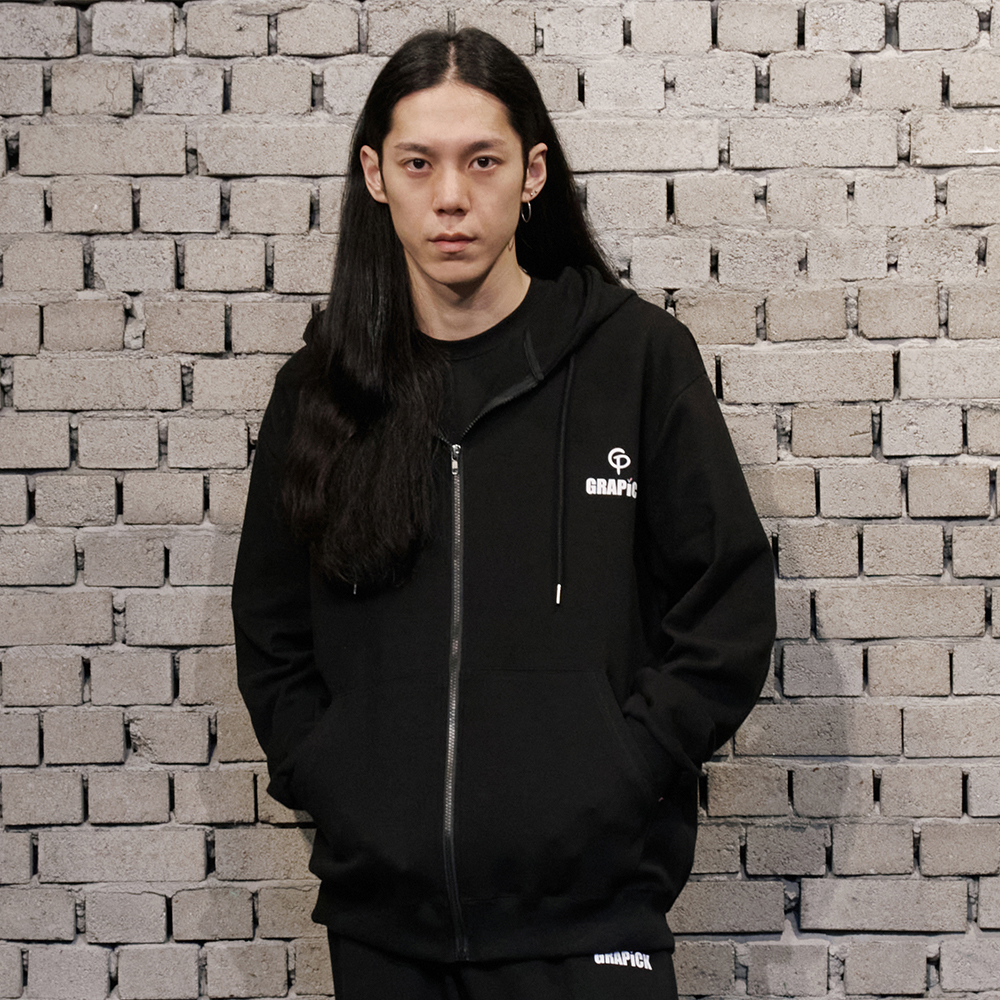 APPLIQUE STUD DYED HOOD ZIP-UP_CHAROAL