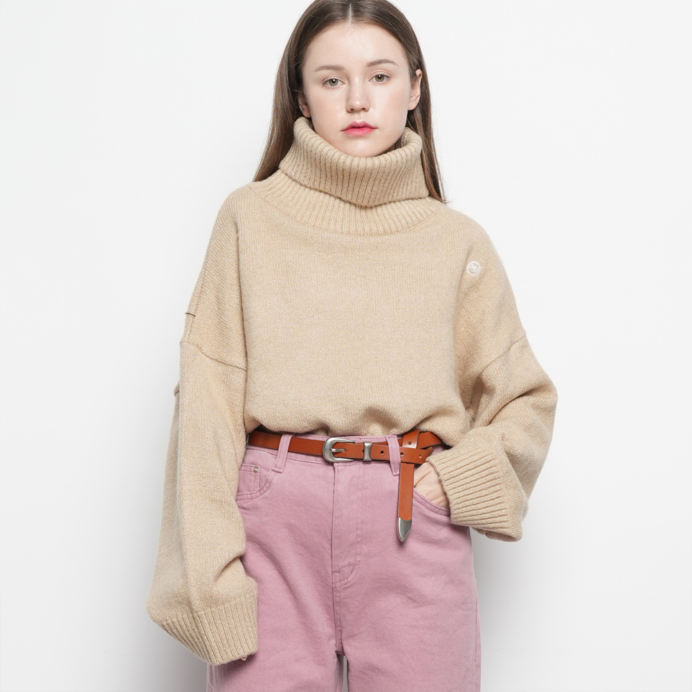 사선 플랩 형태의 비대칭 넥라인 디자인의 페미닌한 니트입니다.