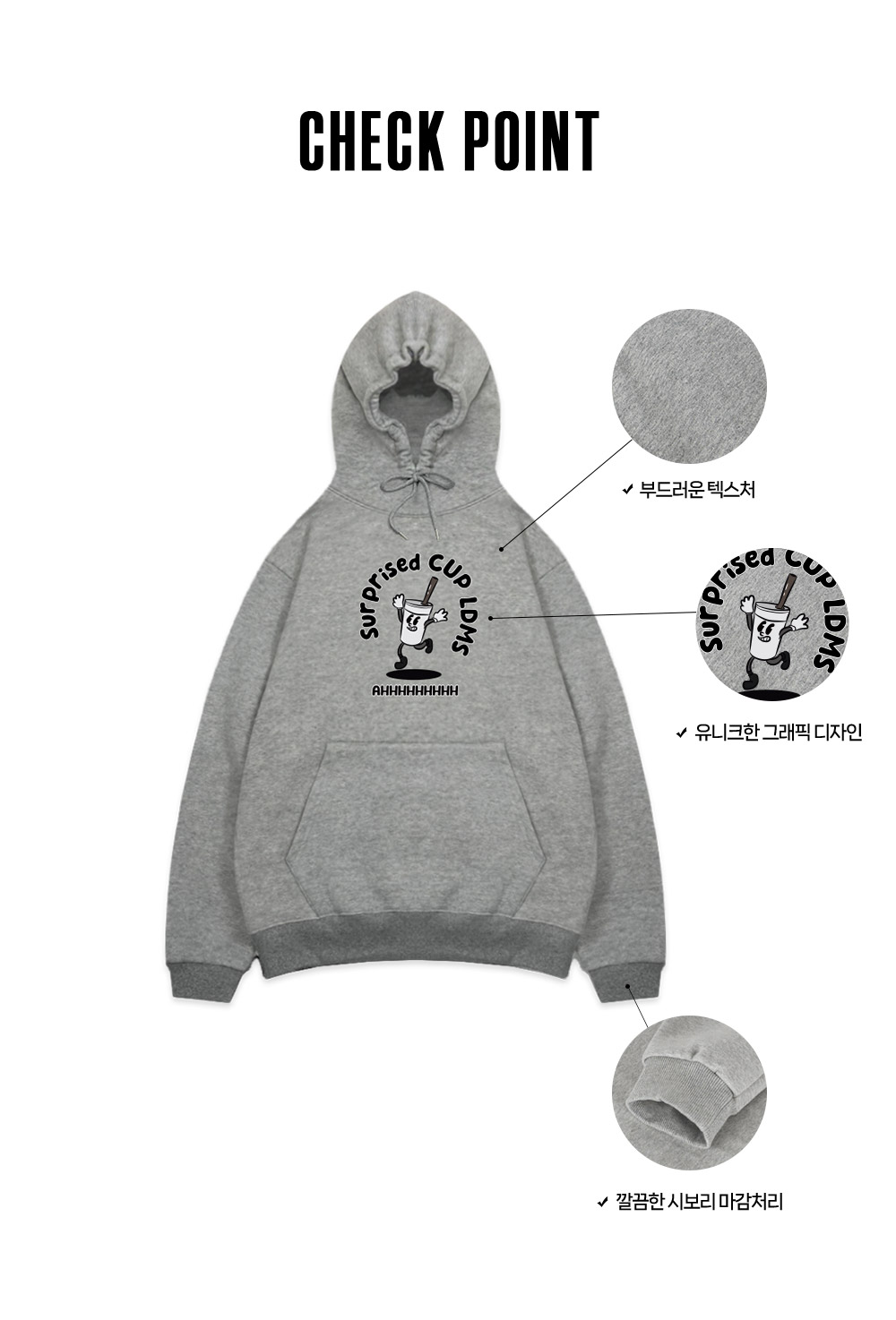 RIDING BIKE CAT 오버핏 후드 티셔츠 (라이트 그레이)